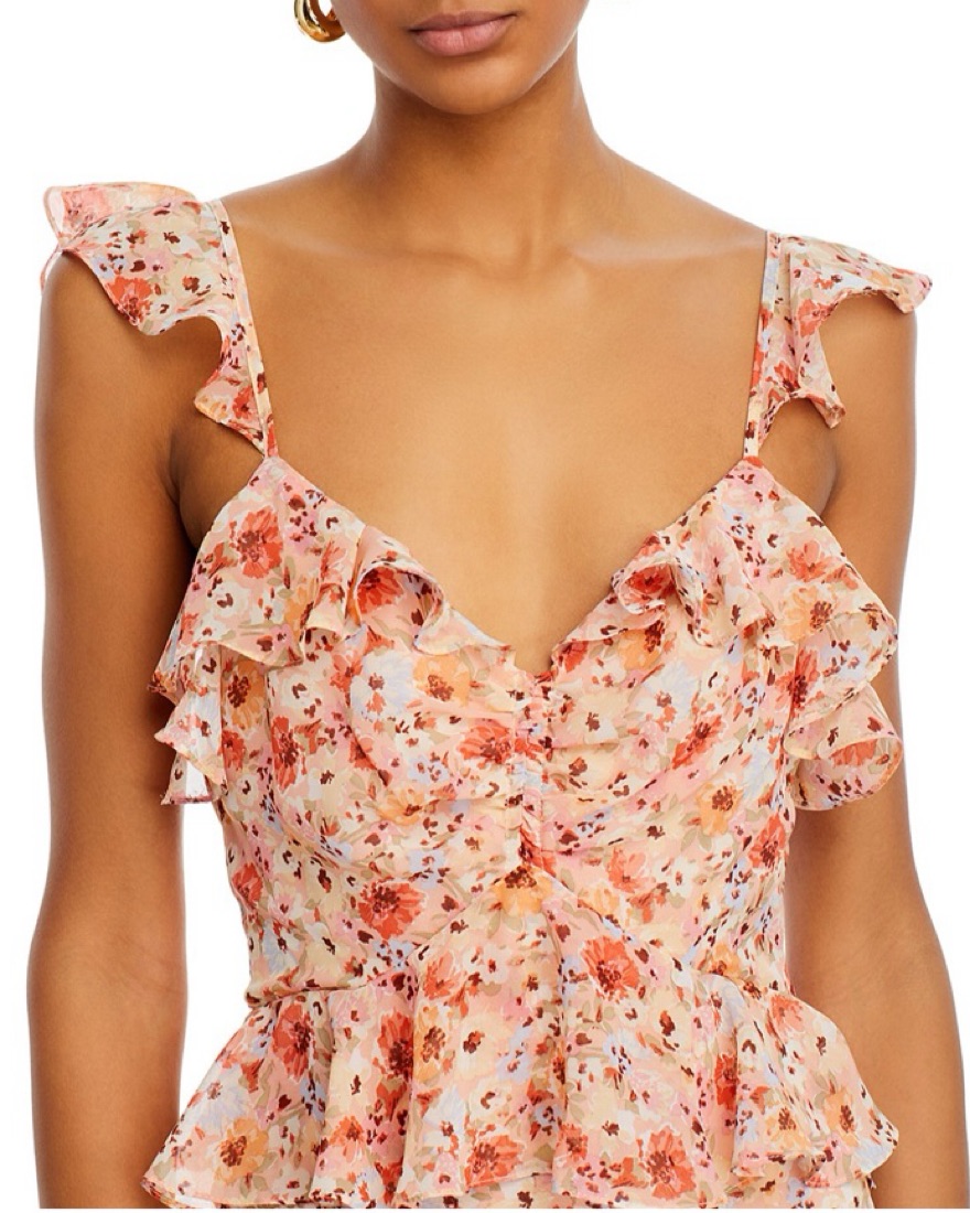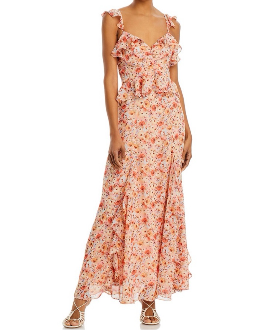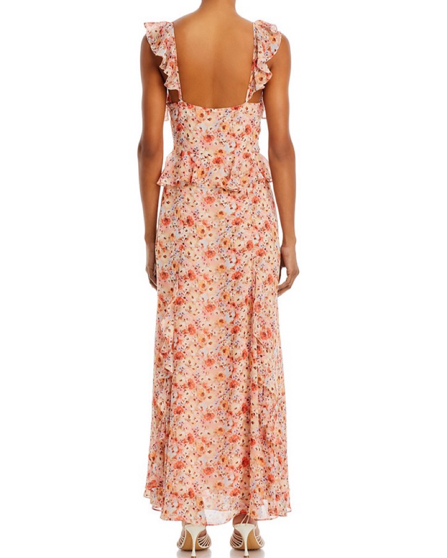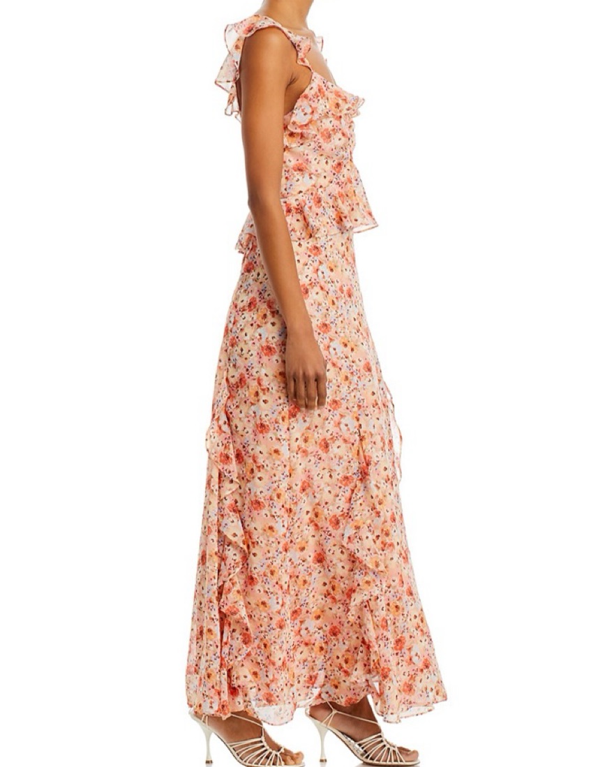 Aqua Floral Ruffle Trim Maxi Dress by Aqua - Pickle