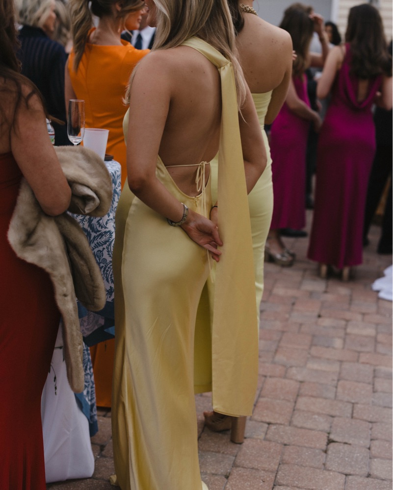 Sau Lee Pearl Gown in popcorn yellow. I have never felt more beautiful in a dress before! Worn two weddings and received so many compliments! This dress is so flattering. (This is either a sir 4 or 6, I’ll check when I’m home from work)