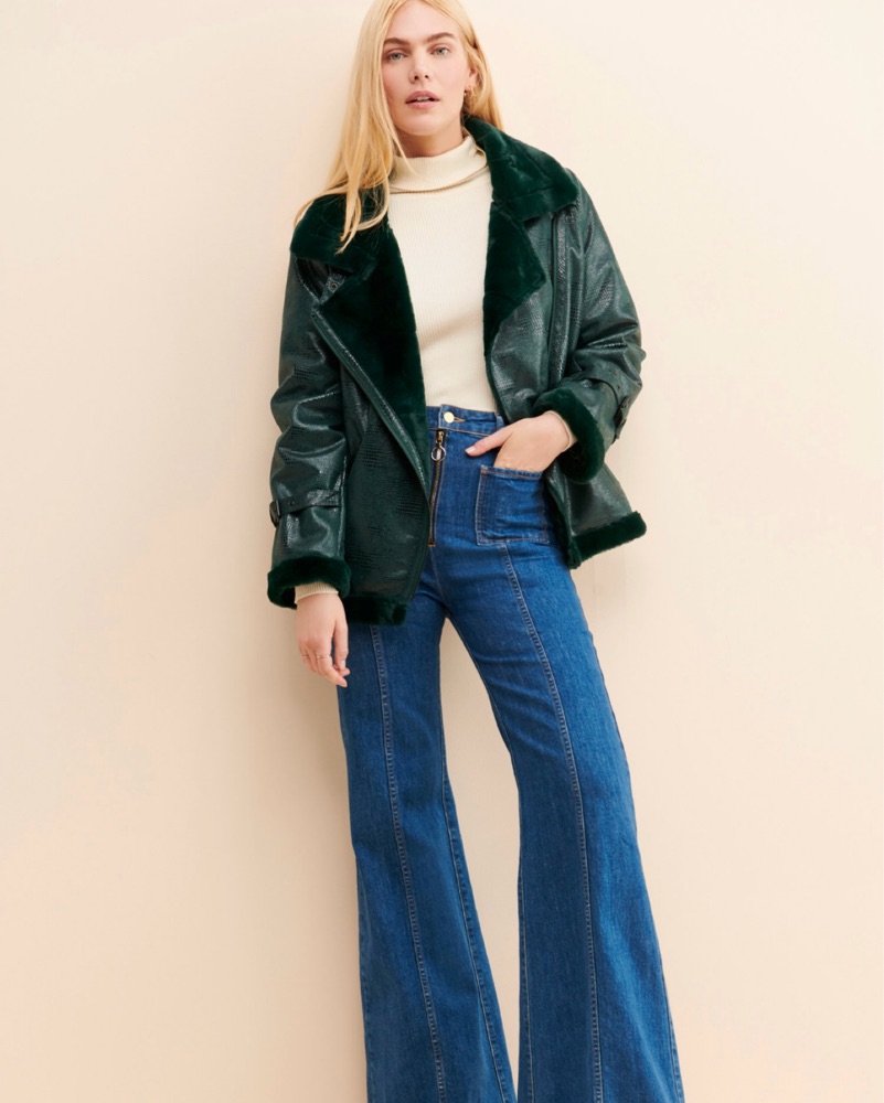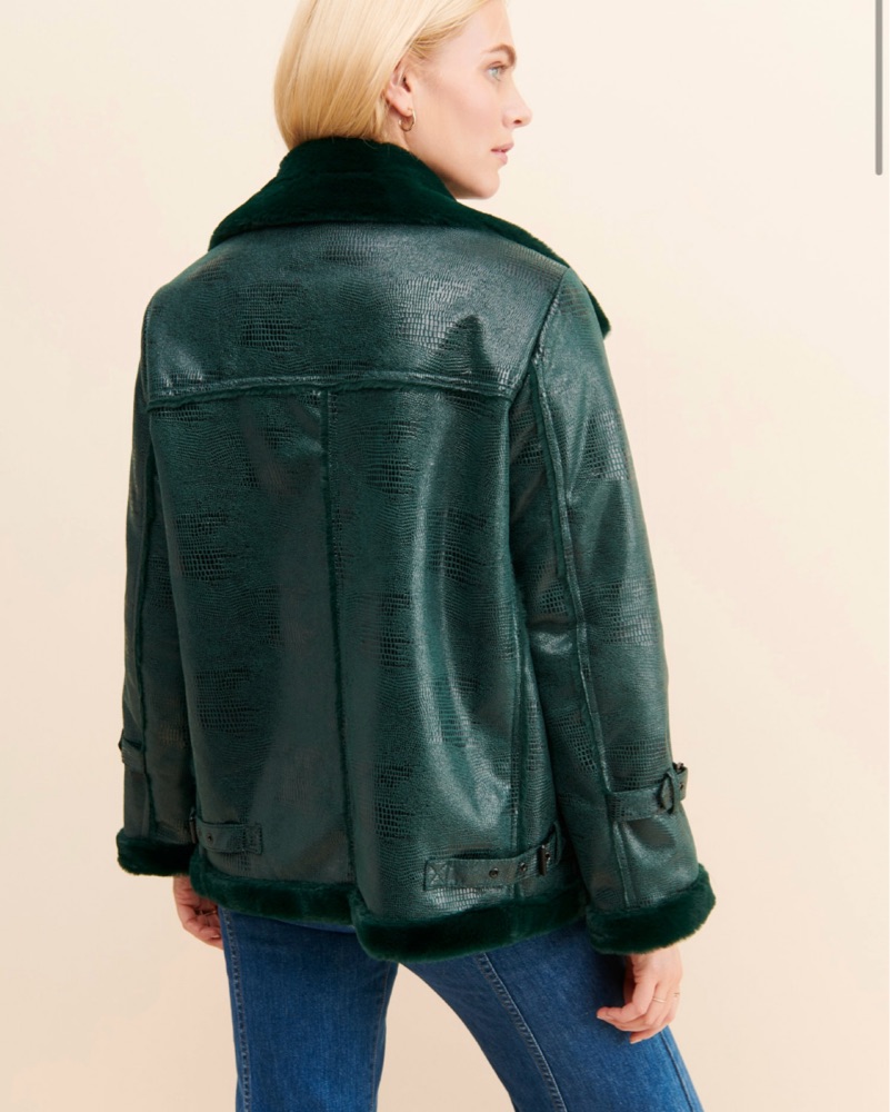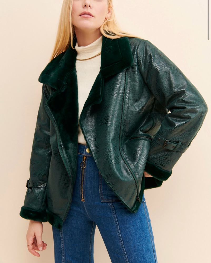 Dark green Sherpa moto jacket from hutch. Always get so many compliments on this! XS but i’m normally a S and it fits slightly oversized