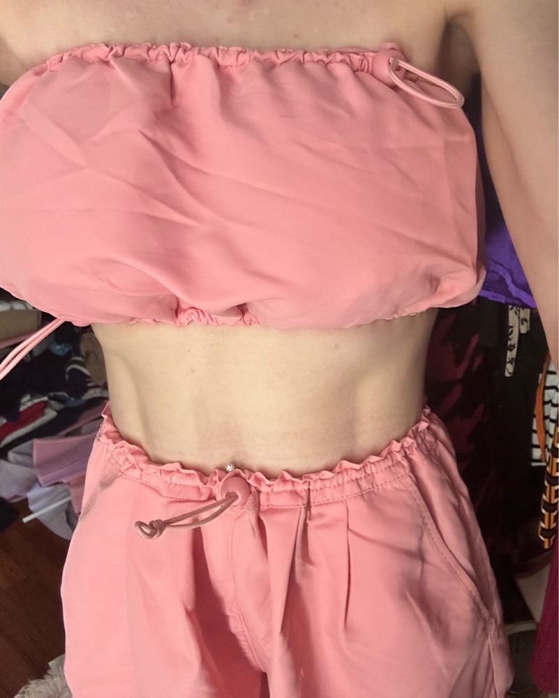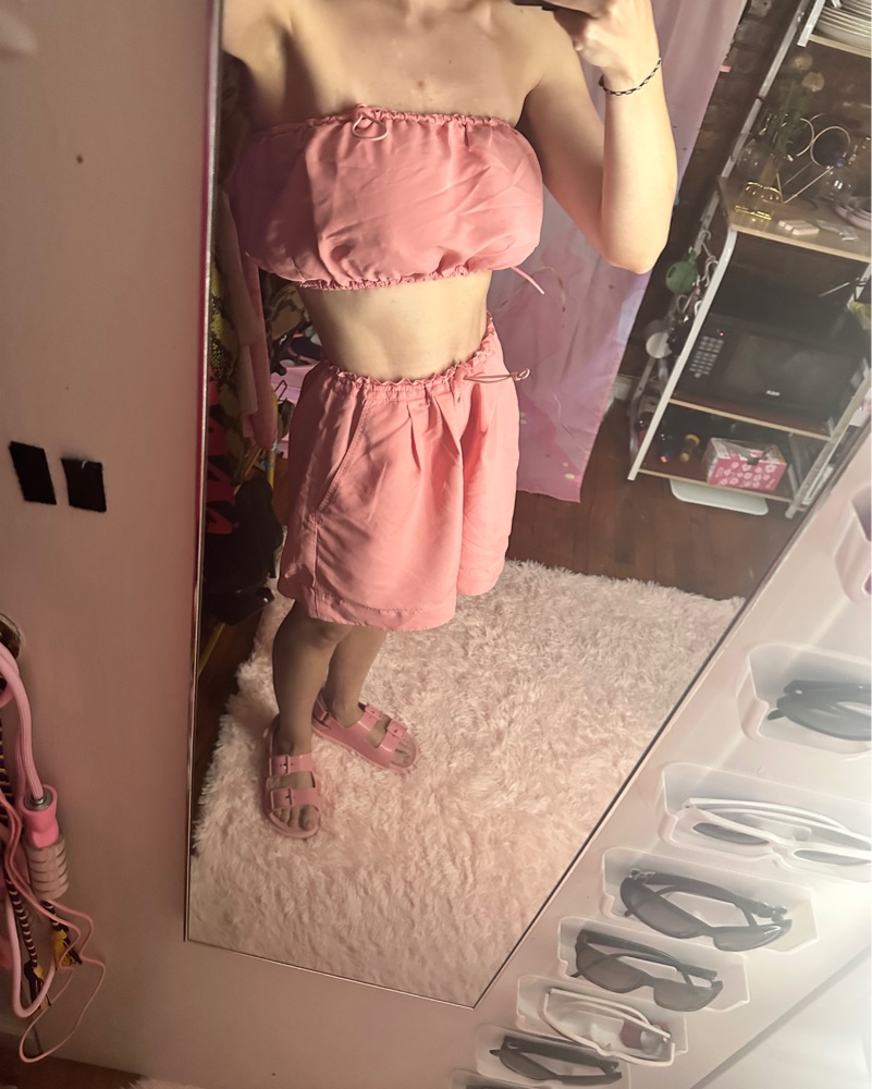 pink Staud shorts and top with toggle pulls and comfy material, size xs