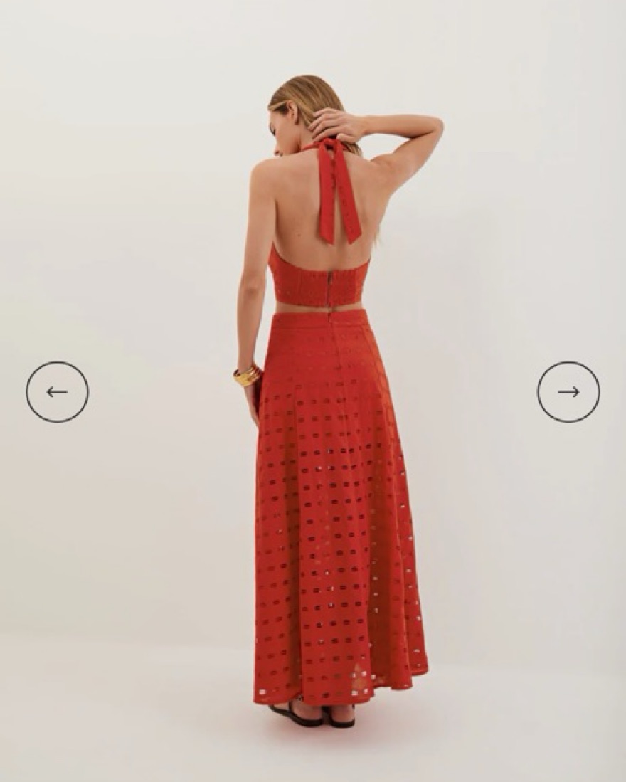 Eyelet Bea Maxi skirt and Eyelet Maven top. Zip closures on the skirt and top. Top has halter tie in back. Both size small.