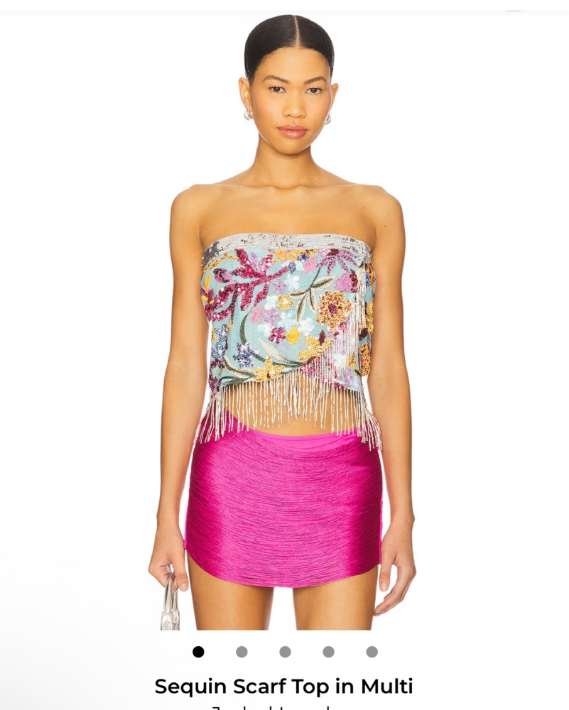 This stunning scarf skirt is perfect for a fun night out. The vibrant sequin design and fringe trim add a touch of glamour to any outfit. It can be worn as a skirt or scarf top as it has many clear buttons to adjust. It’s good quality but please be careful as it is sequins