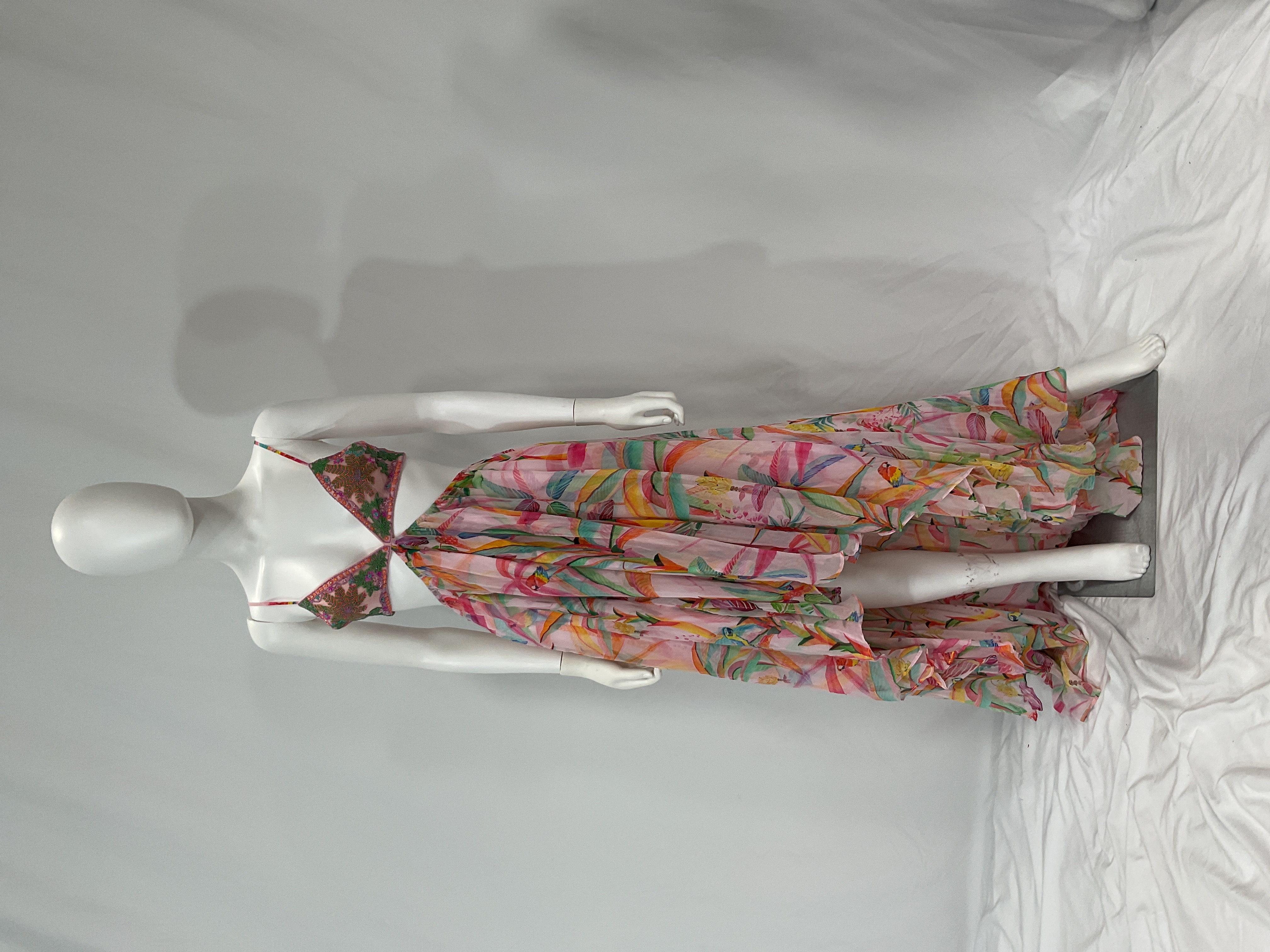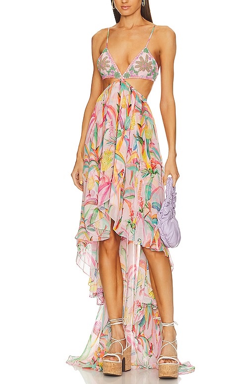 Rio Beaded High Low Dress In Multicolor Tropical by Rococo Sand - Pickle