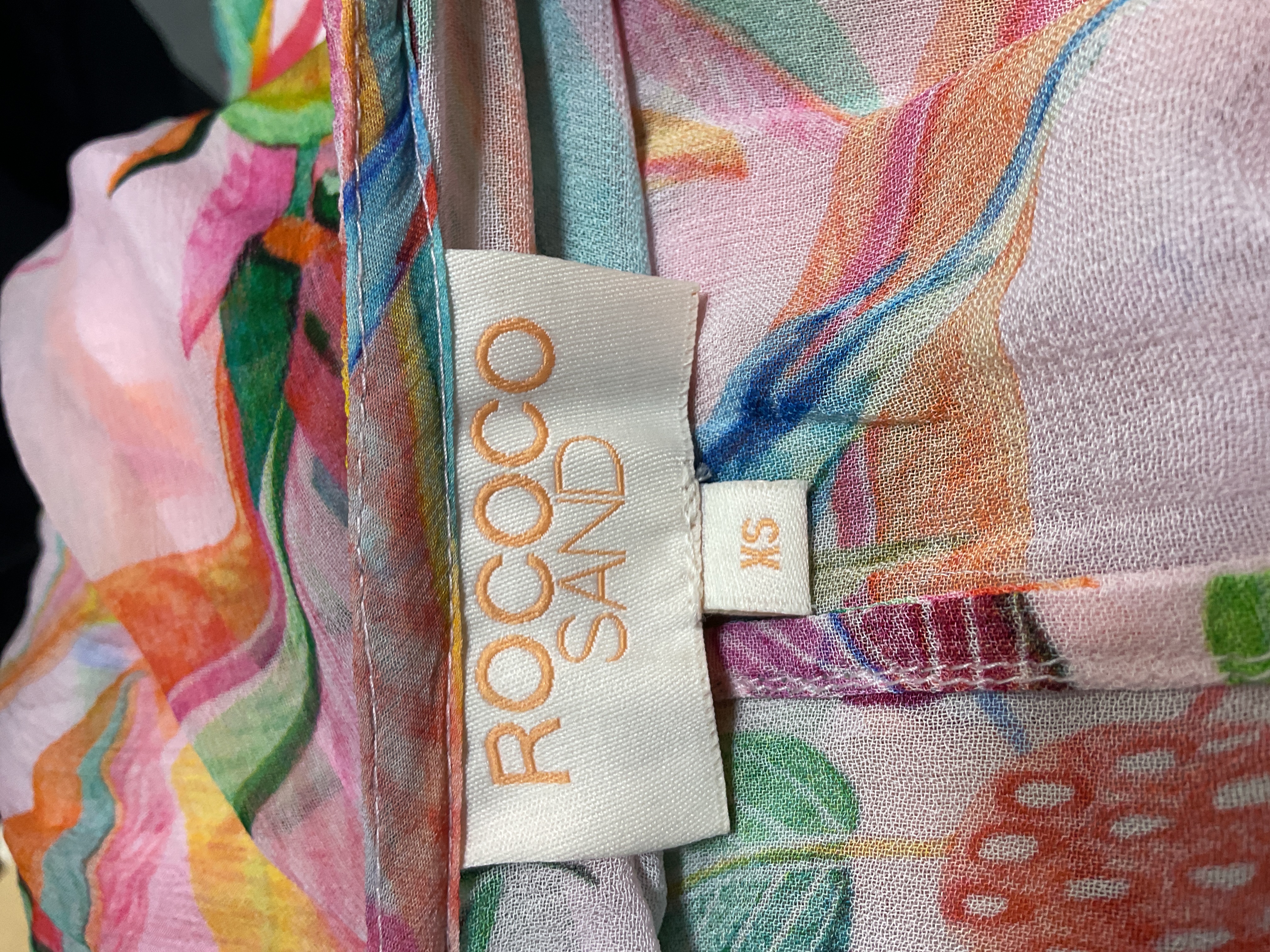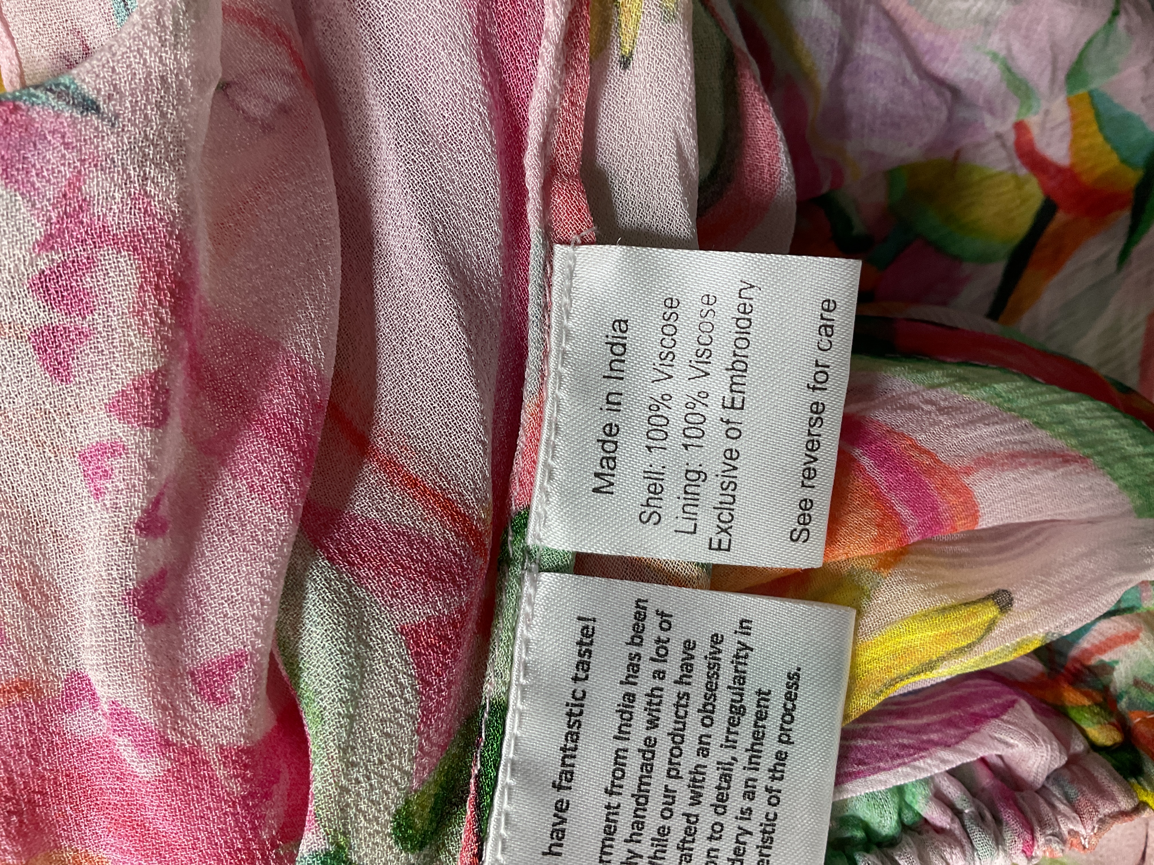 Beaded details and a high-low hem bring vacation vibes to any occasion. The vibrant tropical print makes a statement from brunch to beach parties.