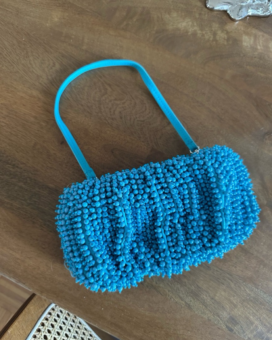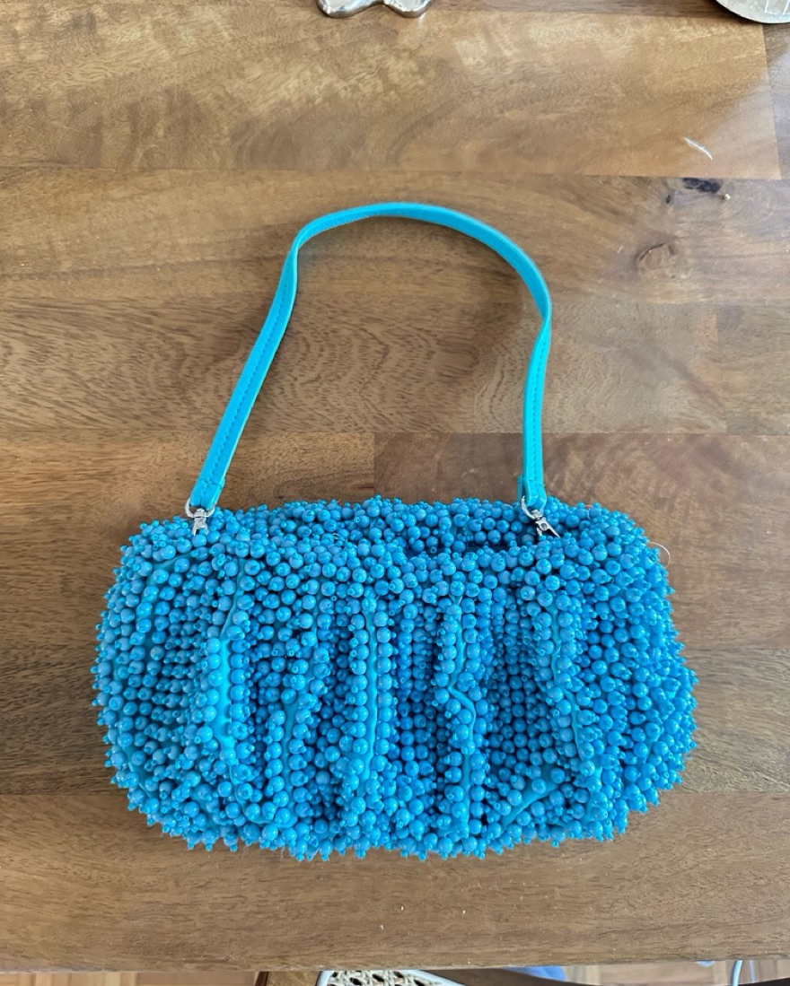 Staud beaded bean bag in blue - perfect for beachy vacations