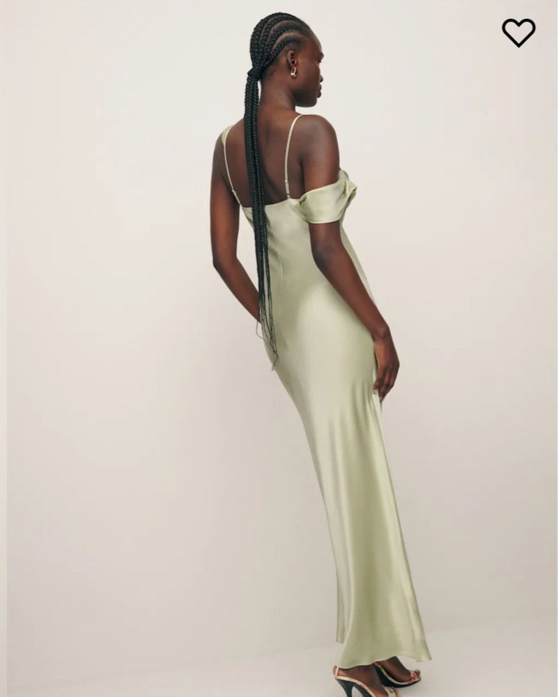 Green Ronda Silk Maxi Dress in color “Dried Herbs” from Reformation. Perfect for a summer wedding guest dress or another formal event. I’m 5’6 for length guidance on me. Please treat as your own and keep clean. Price includes dry cleaning. Tags: wedding guest, summer wedding, formal dress, black tie
