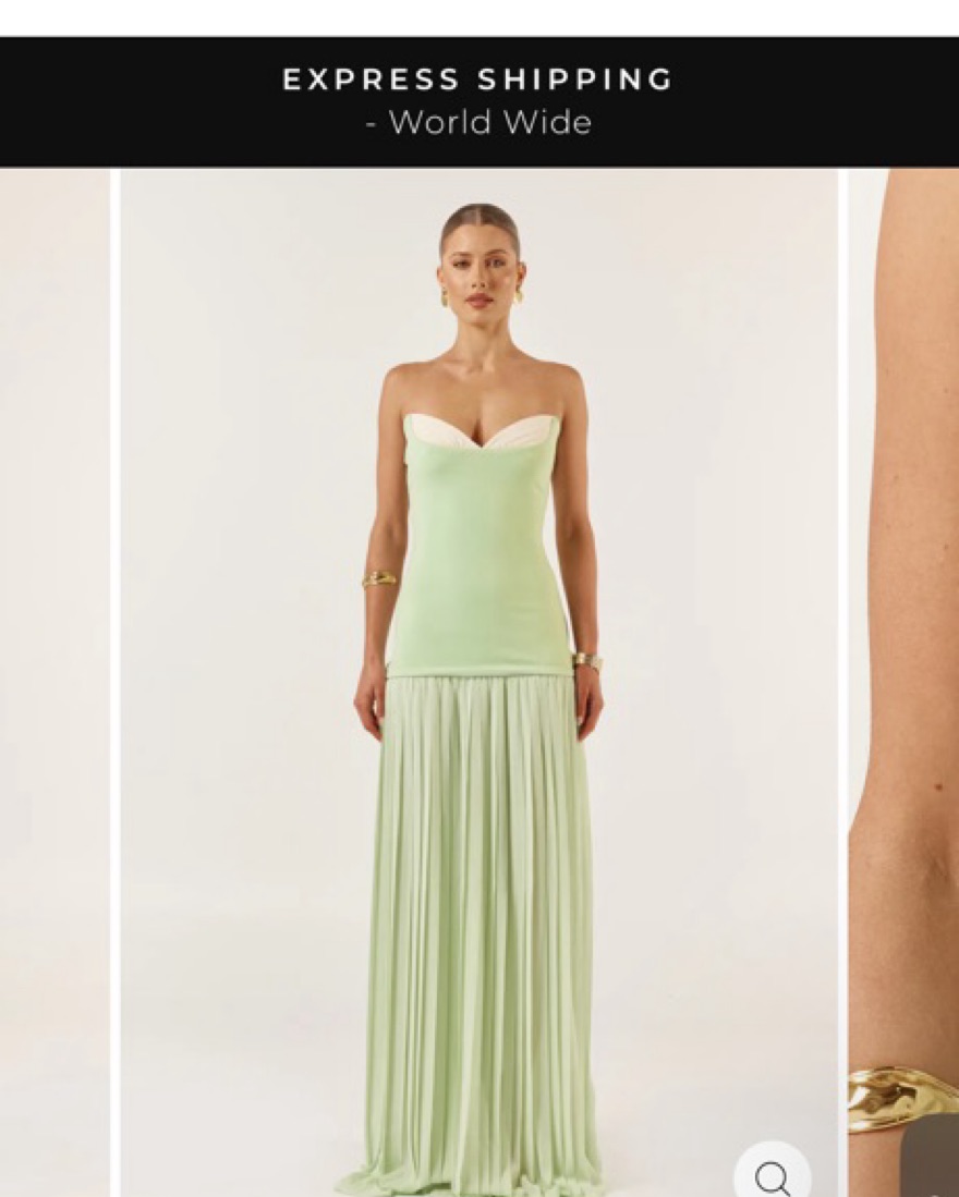 This stunning green gown features a sweetheart neckline and a dramatic pleated skirt, perfect for a formal event or special occasion.