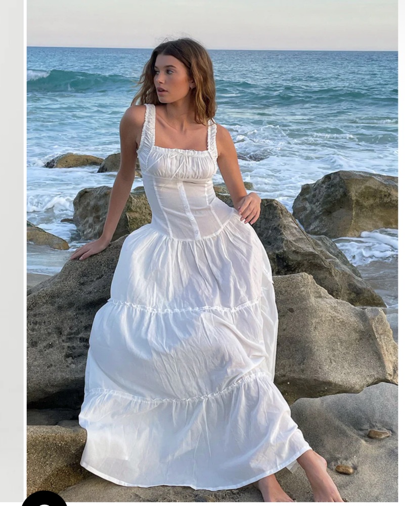 The perfect summer dress. Form flattering and so breathable! Sheer bodice