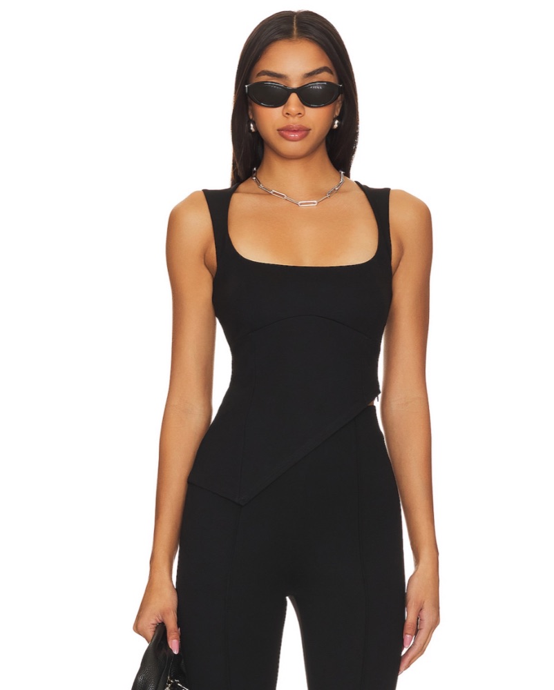Crafted from smooth jersey fabric, it sports an asymmetric hem and a chic low square neckline.