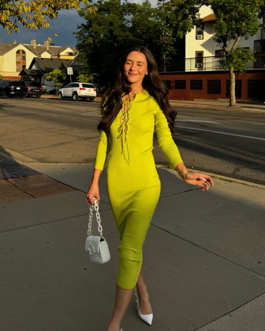 Alberta Ferretti V-neck Long Dress by Alberta Ferretti - Pickle