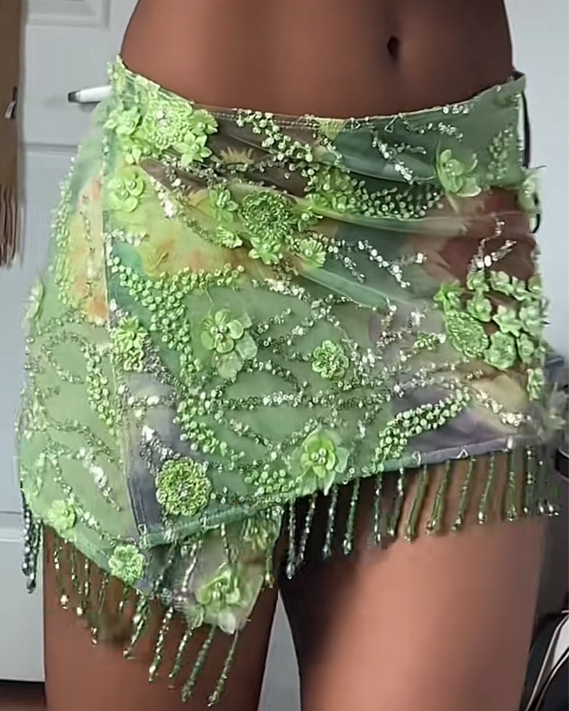 Jaded London Melona Beaded Skirt by Jaded London - Pickle