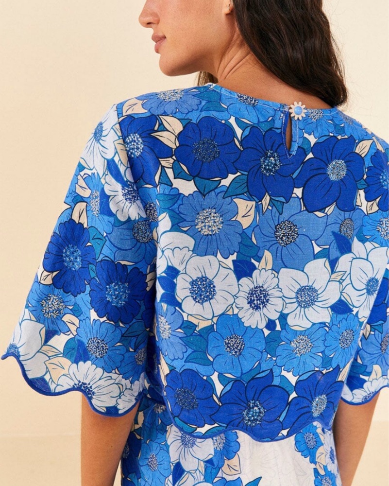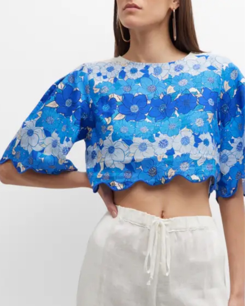 Farm Rio Blue Flower Stripes Crop Top