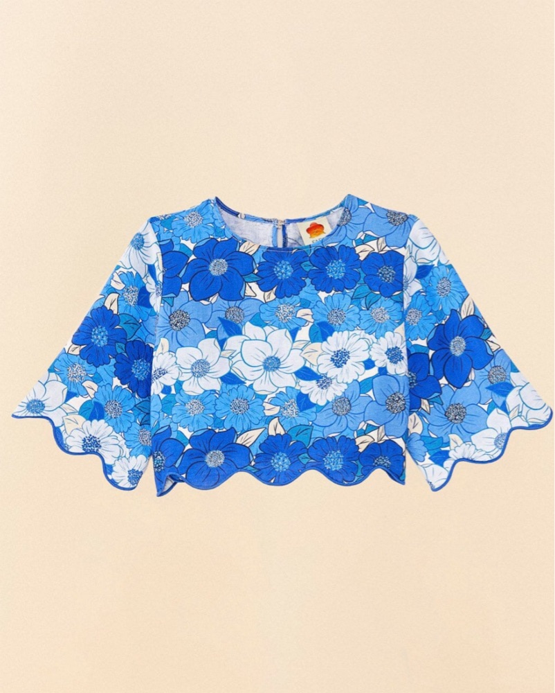 Farm Rio Blue Flower Stripes Crop Top by Farm Rio - Pickle