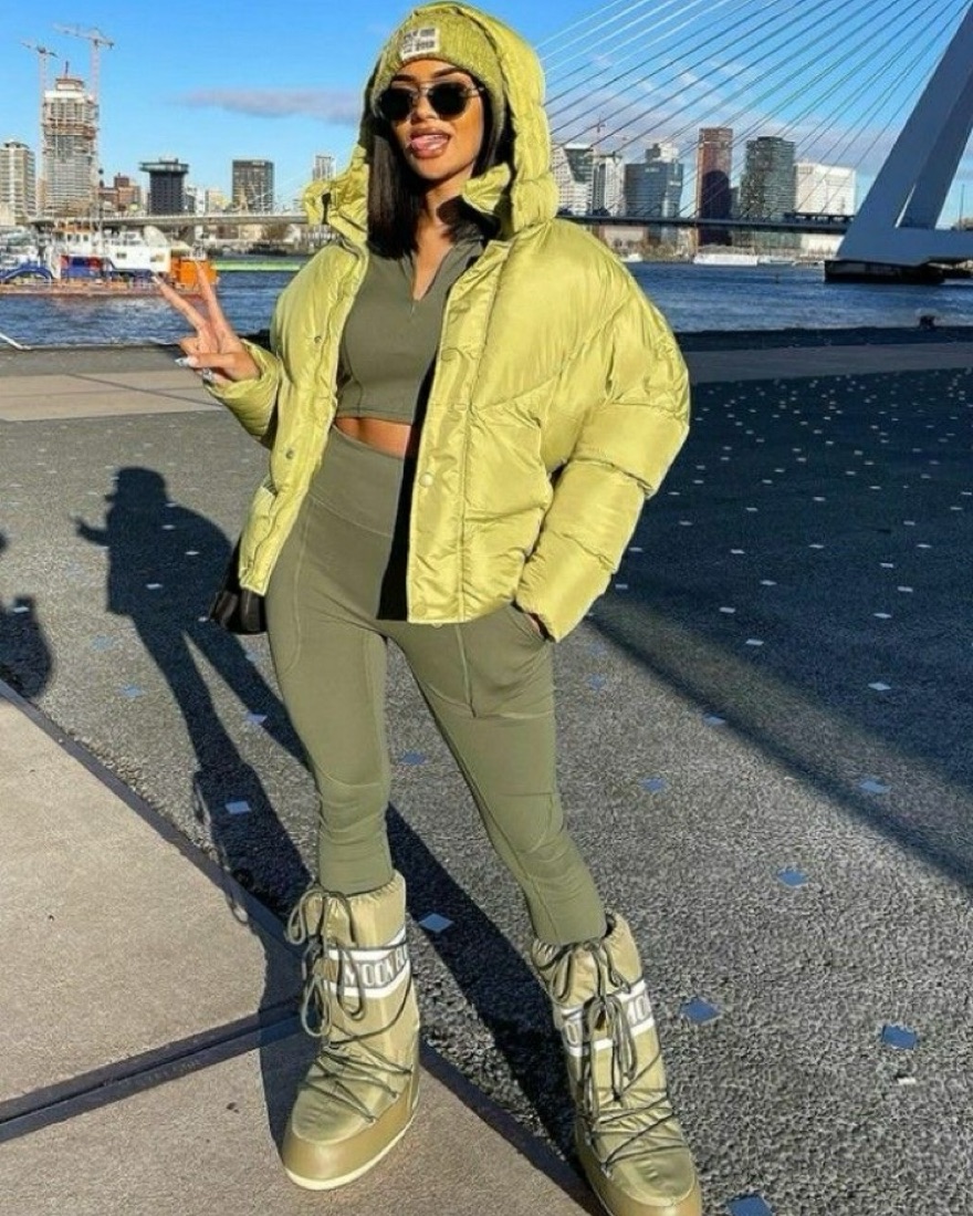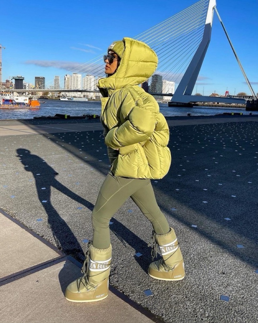 Tall green moon boots. Perfect for a winter trip! Please make sure you’re careful while wearing. Size 39/41 EU = 8.5 - 11 US
