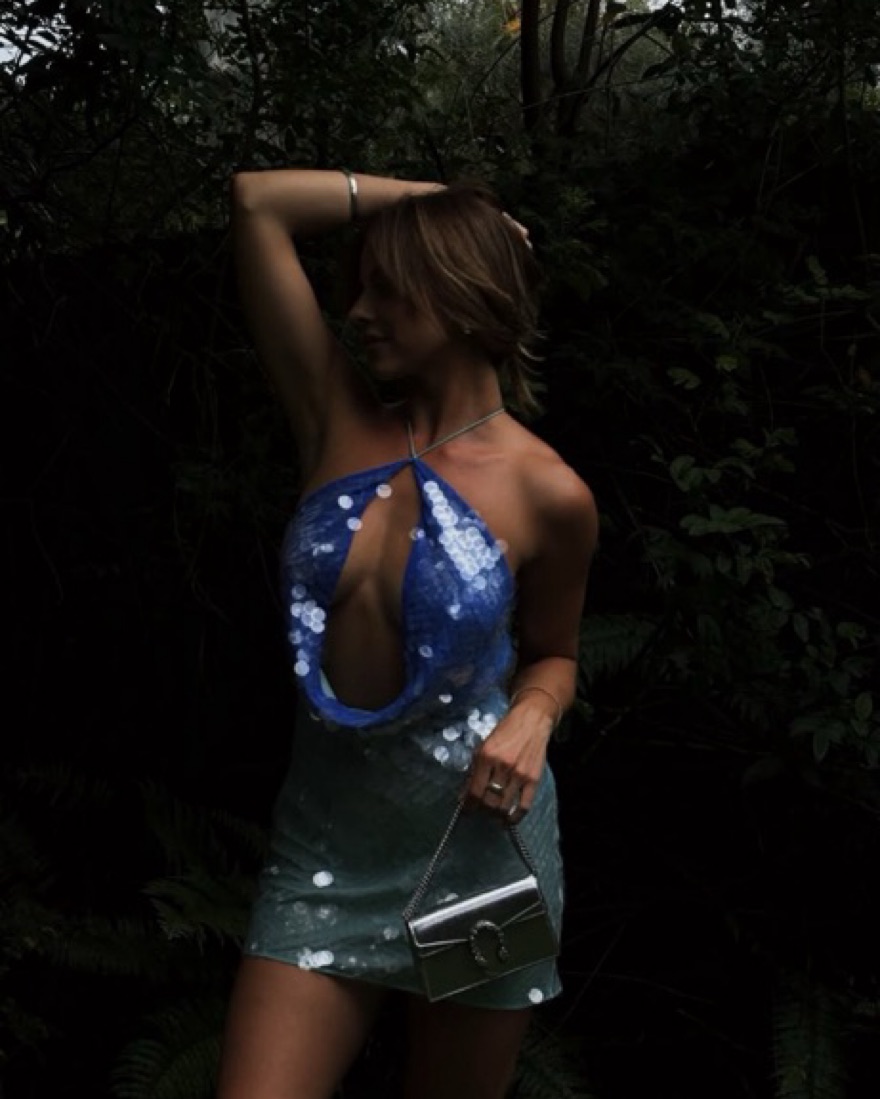 green and blue sequin mini dress from rat & boa. price includes dry cleaning