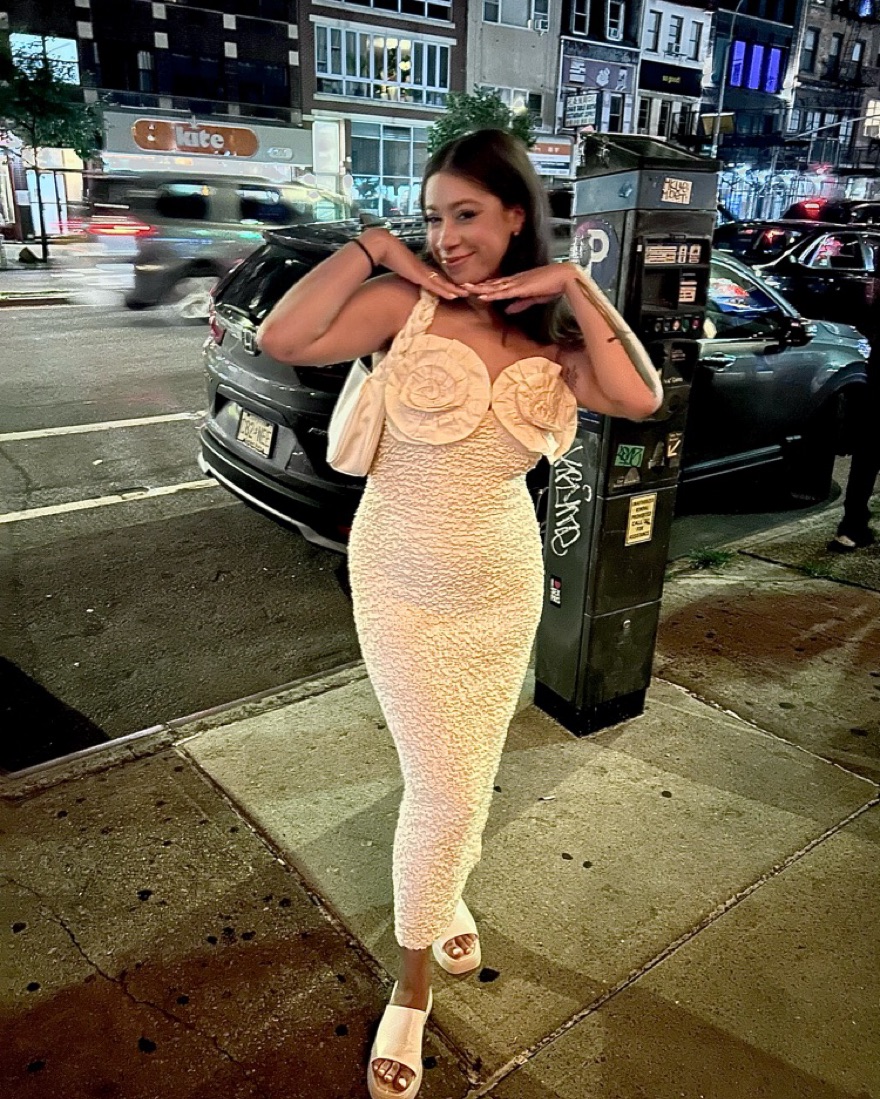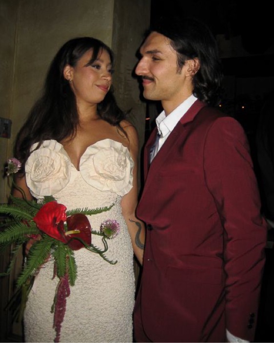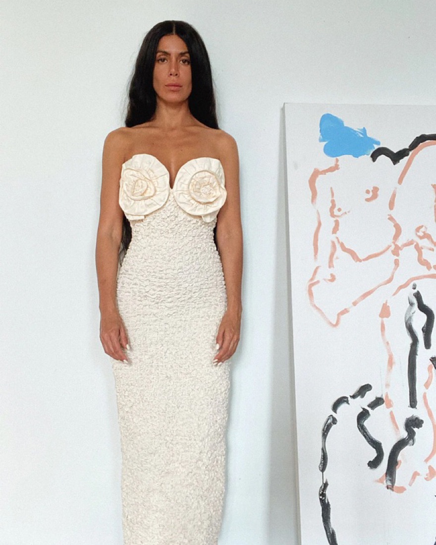 Labeled size L but can work for a M as well (i usually wear medium but this fit great). In wonderful condition - i wore it once for my wedding afterparty! Its more of a cream than true white.