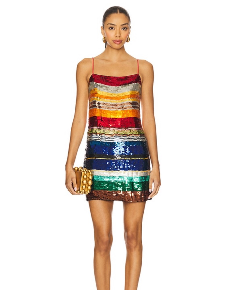 Bridget Mini Dress in Rainbow Stripe sequin