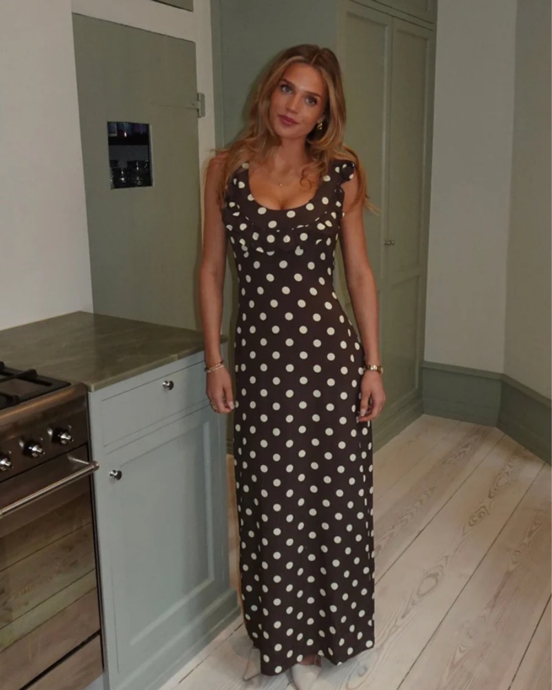 Such a gorgeous dress for summer or fall! Sleeves can go off the shoulder for a more relaxed look and pairs perfectly with any neutral shoe or bag!