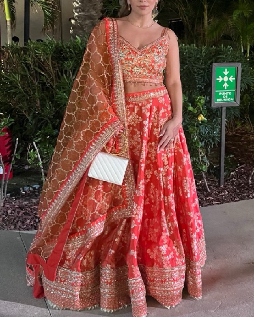 Custom measured Indian wedding dress. Handmade in India, beautiful fabric and amazing embroidery and color.