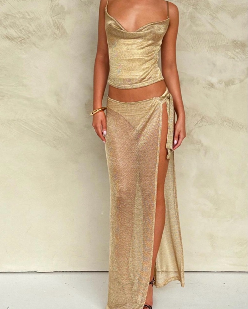 Beautiful gold set perf for vacation, weekend trips, etc. Renting both pieces together.