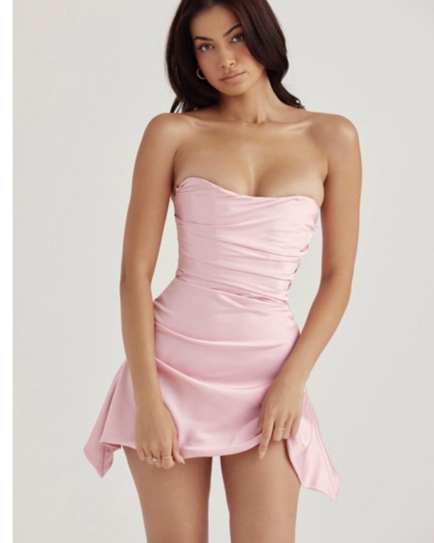 Clasp in back broken but zips completely up so never ended up getting it fixed. Size 4, very tight in chest area. 18 dollar dry cleaning fee added to rental price.