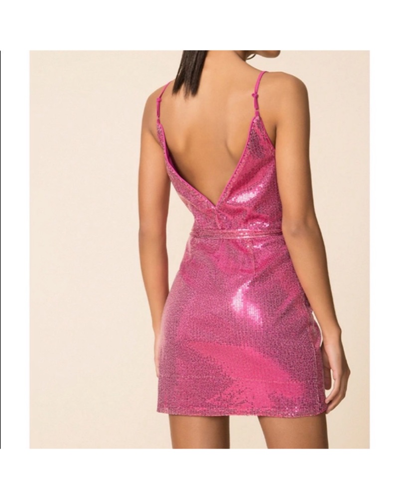 Dazzling Pink Sequin Mini Wrap Dress