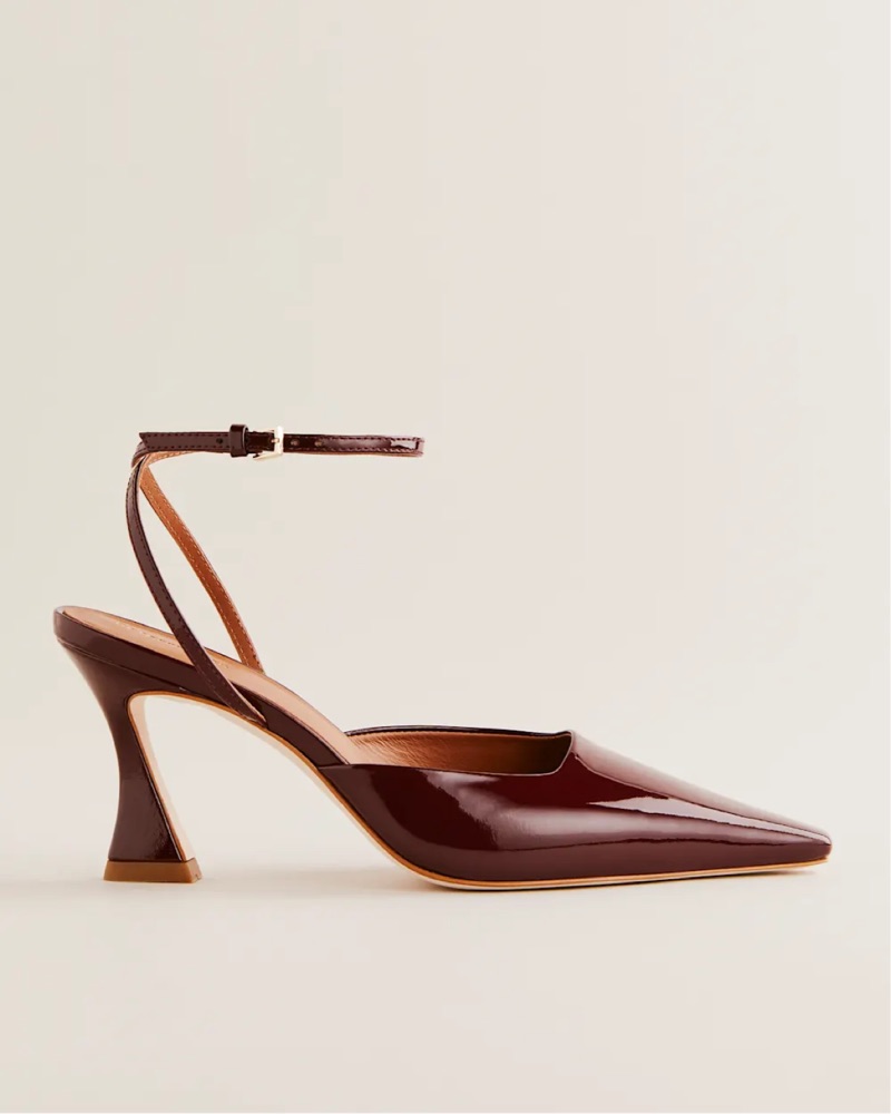 A pointed toe pump with a flared heel and adjustable ankle strap. Size 9, never worn and so adorable!!