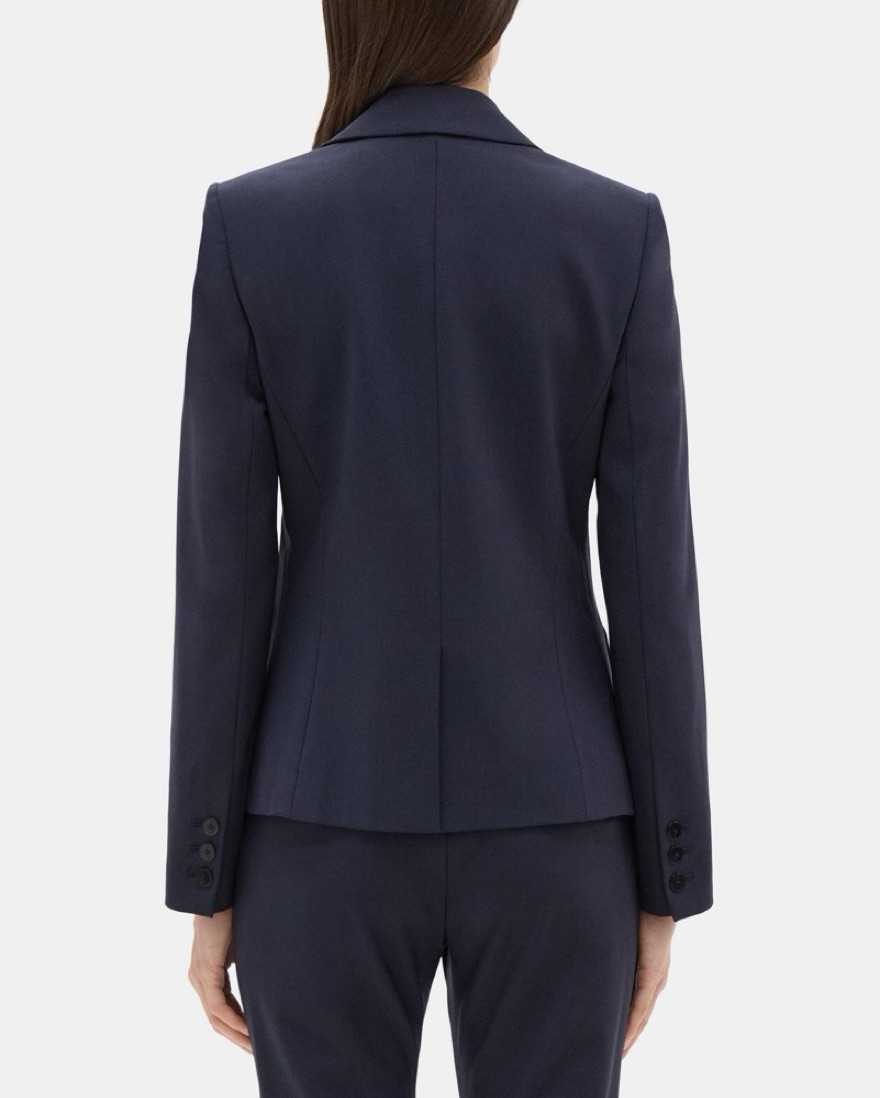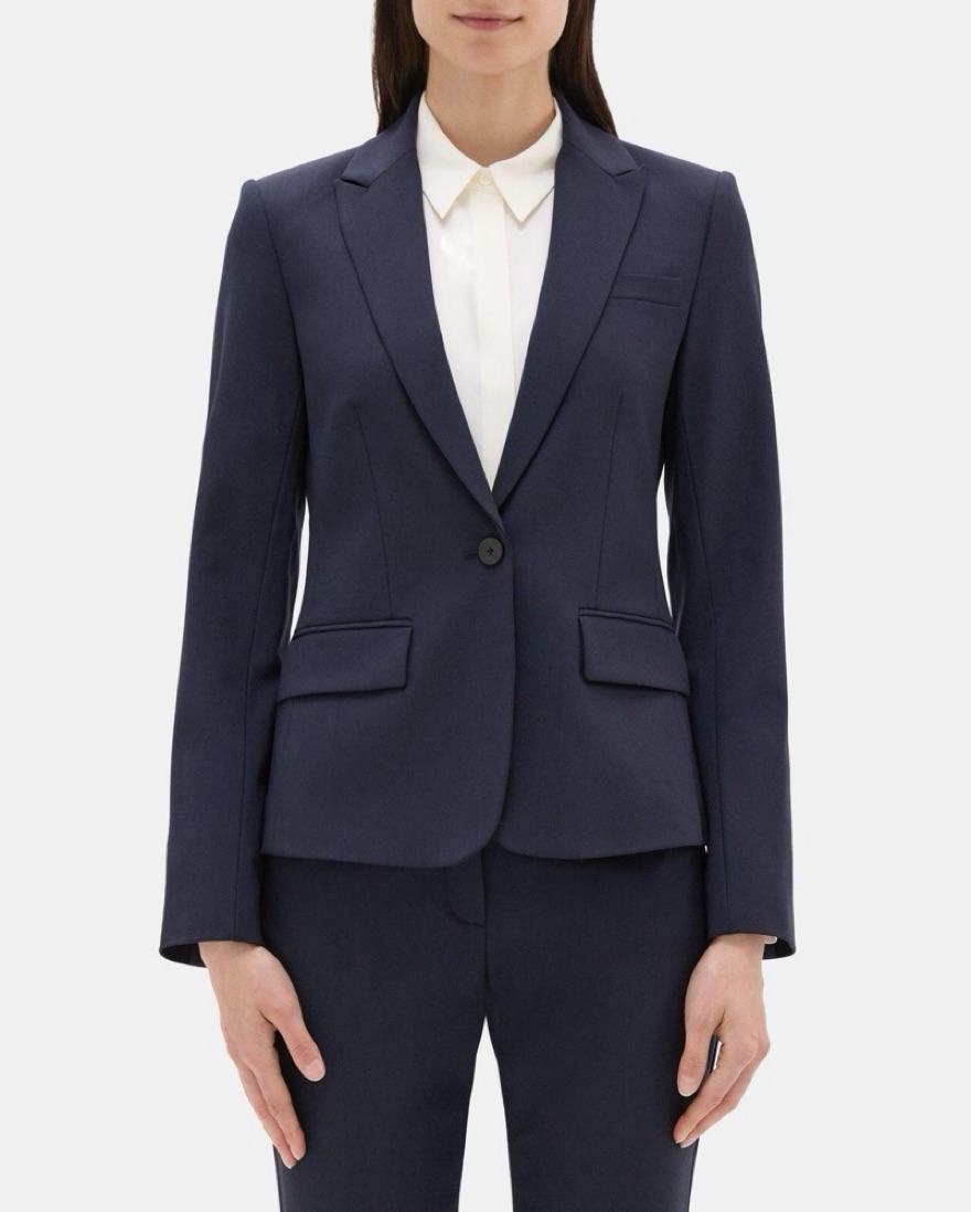 This classic navy blazer is perfect for elevating any office-appropriate or formal look. It hugs you at the waist. Matching pants are also available in a size 0 :) message if you want those too!