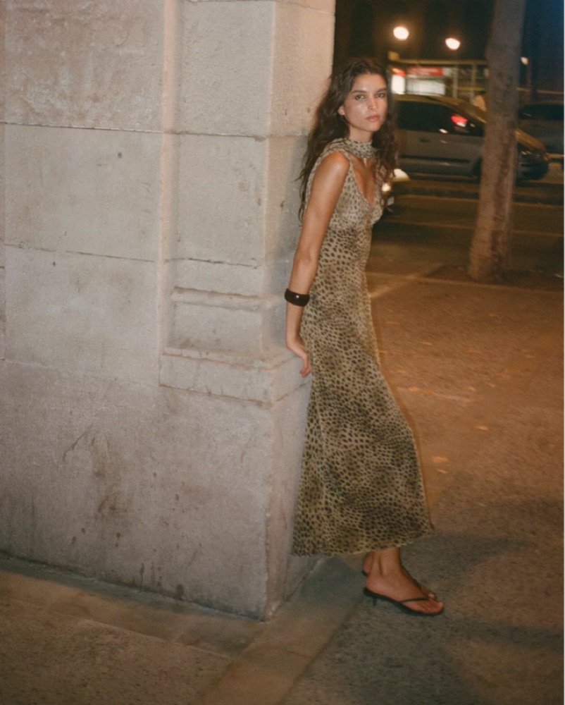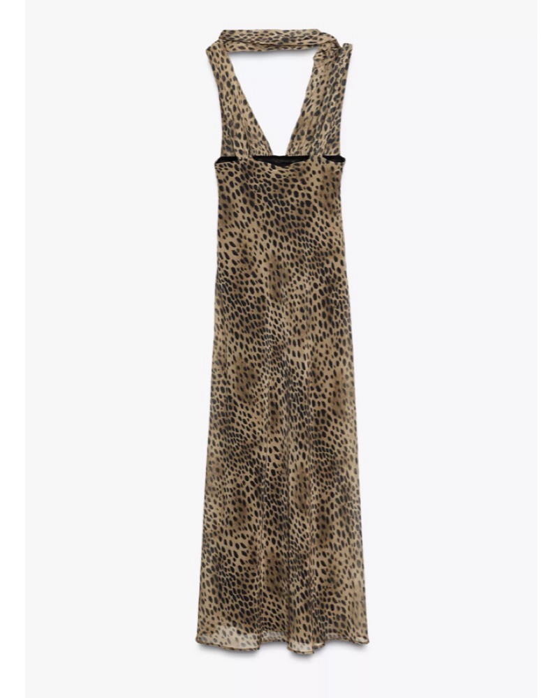 This captivating leopard print maxi dress is perfect for a night out on the town. The plunging neckline and body-skimming silhouette create a sophisticated yet sultry look. Attached scarf adds so much to this dress. Brand new! #zara
