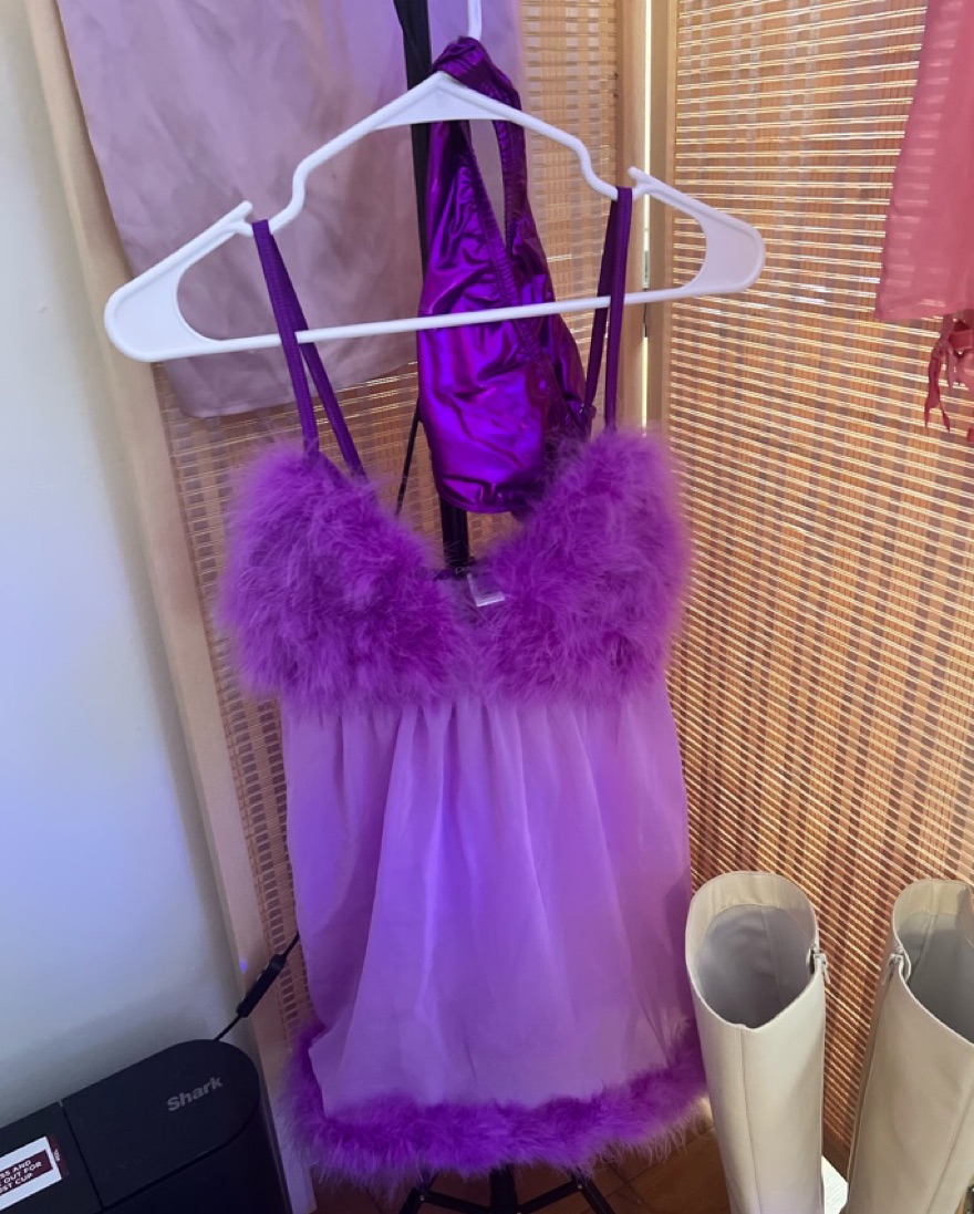 Austin powers felbot costum purple from dolls kill never worn woth mayching underwear!
