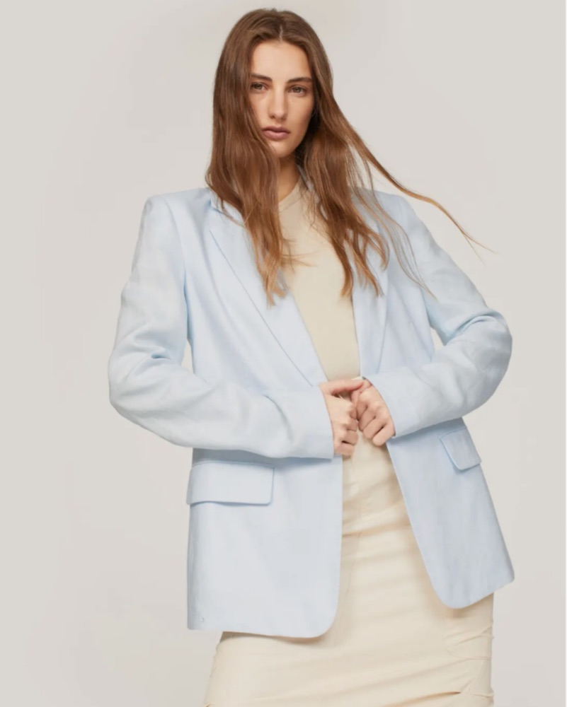 $495 ALC Light Blue Linen Blazer by ALC - Pickle