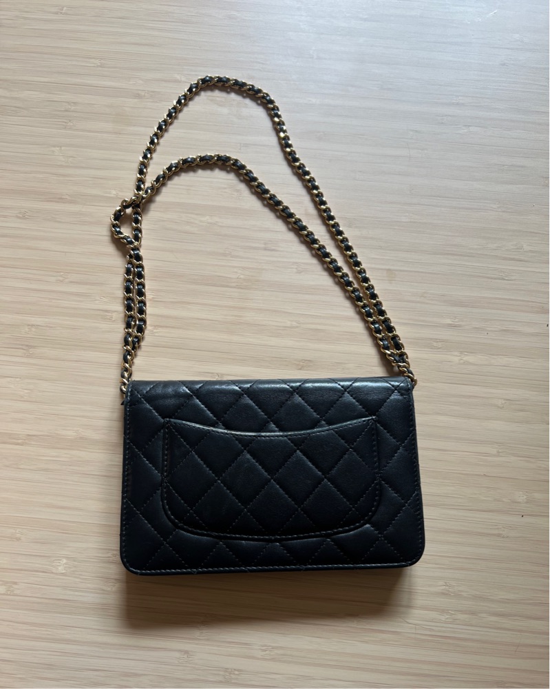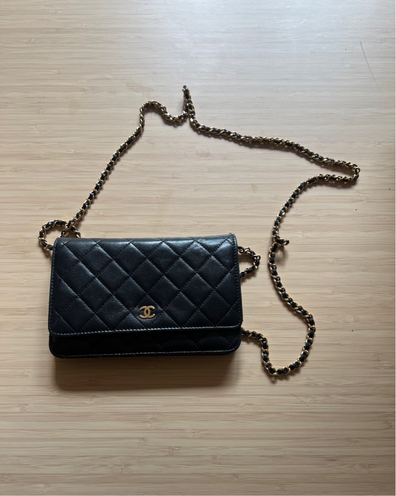 Gold and black authentic Chanel Crossbody - can double loop for shorter straps or keep long. Great for dressing up or dressing down. Can wear to a black tie occasion or with jeans. Minor signs of wear throughout