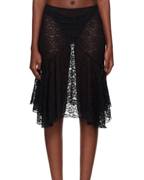 The most flattering lace sheer skirt in black. SOLD OUT. size small, fun midi length. Tags- with jean gimaguas Ganni reformation realisation par Arcina ori