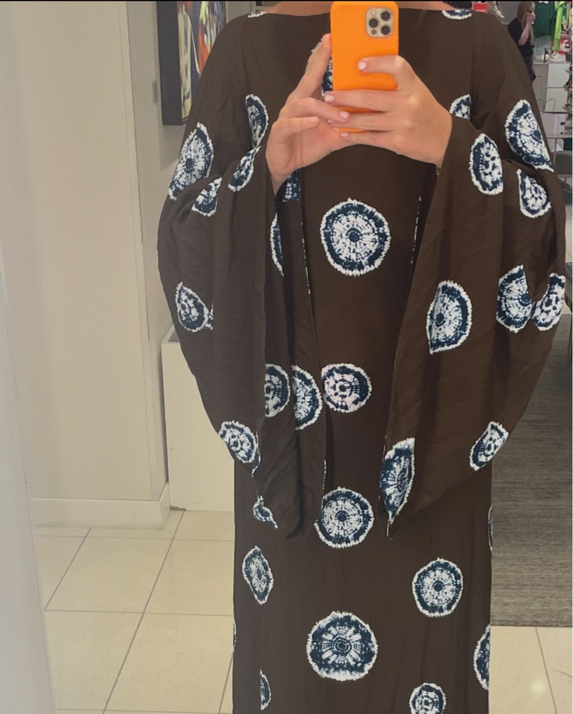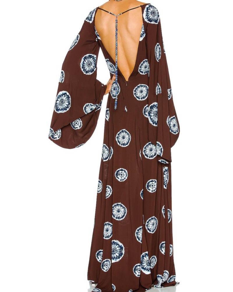 Brown and turquoise long sleeve bohemian dress. Open back with beading. Amazing for tropical wedding, Caribbean vacation, European summer. Bottom tailored to fit 5’6 with 3 inch heels (won’t drag on floor) so can fit many heights depending on heels! Beads are fragile so please be careful! Sold out