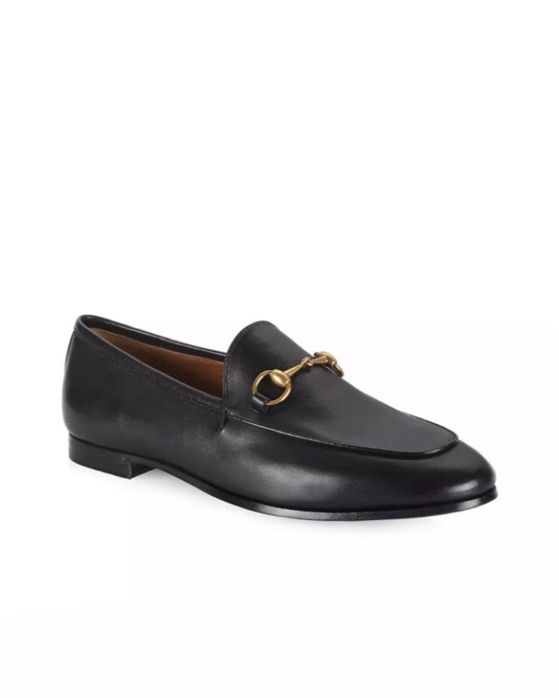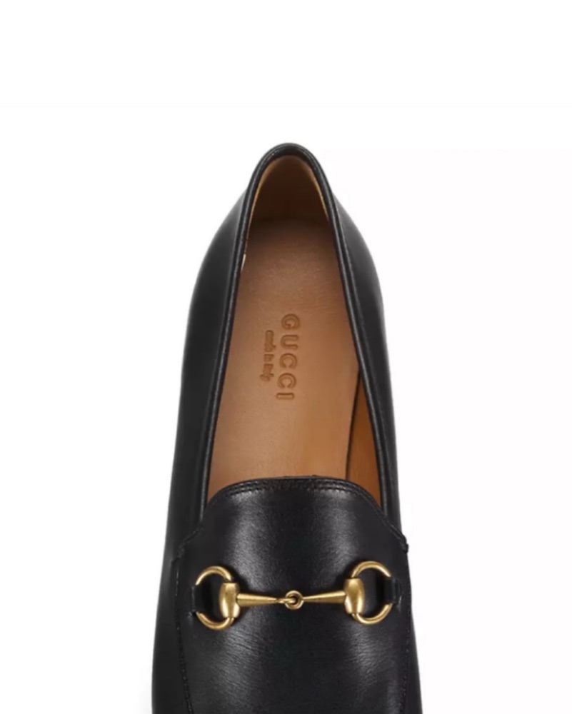 Gucci Jordaan Loafer in black leather. The Gucci Jordaan is the new classic Horsebit loafer with a slimmer shape and Horsebit.
