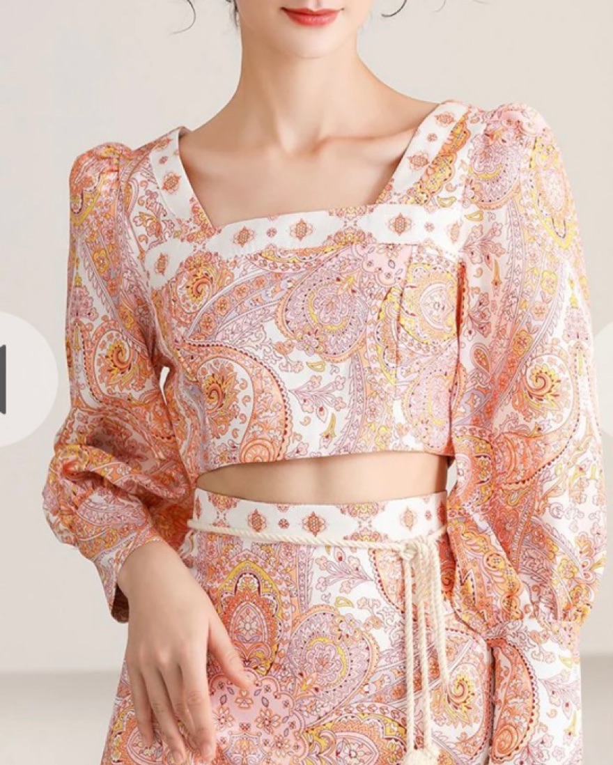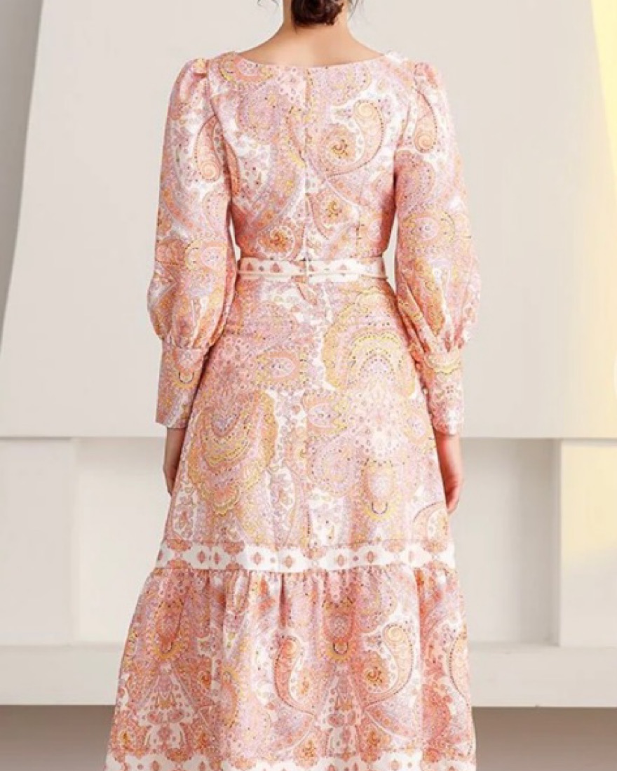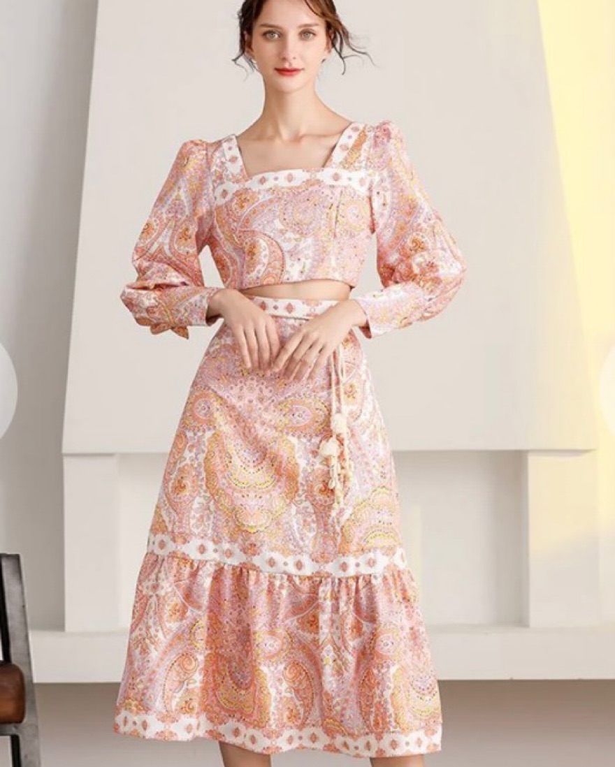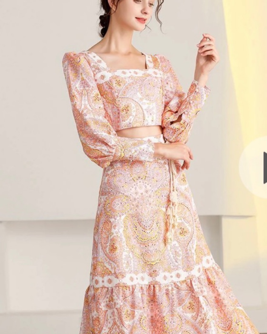 Pink and orange paisley with braided tropical waist belt