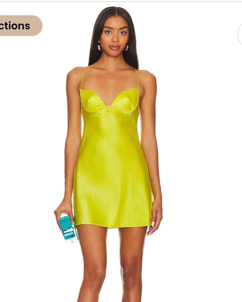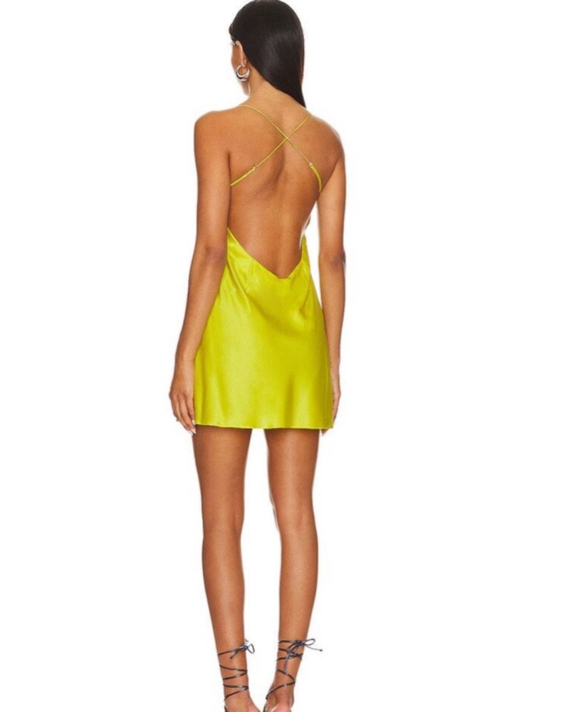 SER.O.YA Clever Silk Mini Dress from reformation (greenish yellow) *PLZ DRY CLEAN IF STAINED