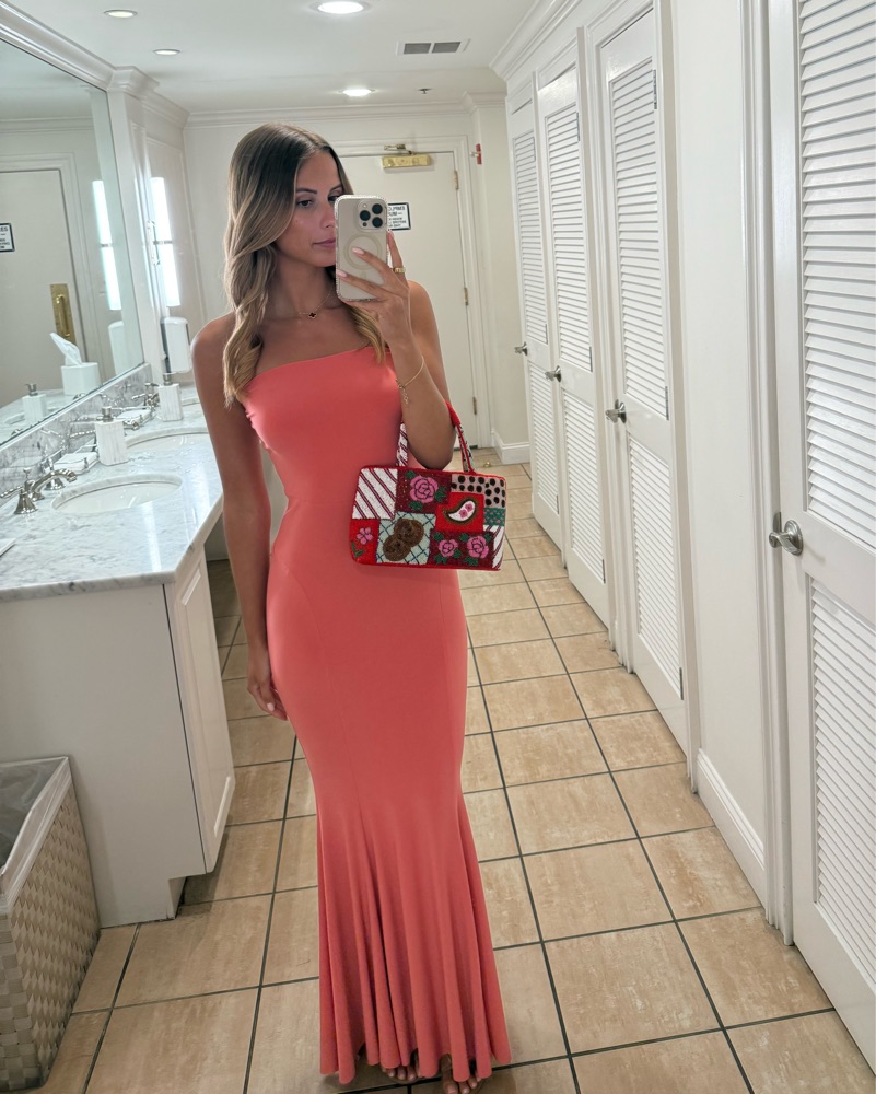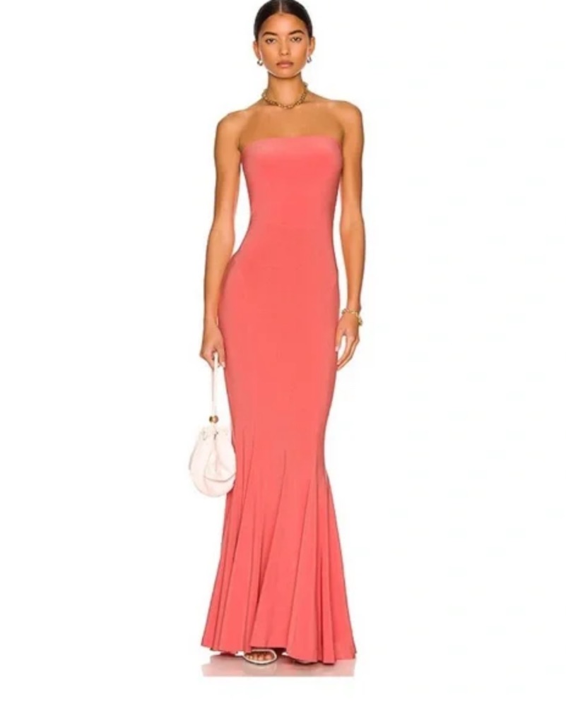 Norma Kamali Papaya Strapless Maxi Dress by Norma Kamali - Pickle