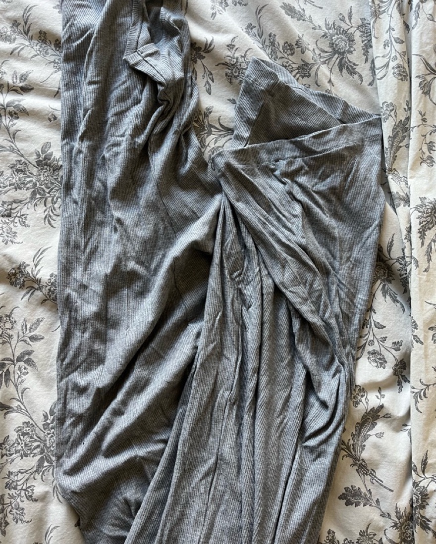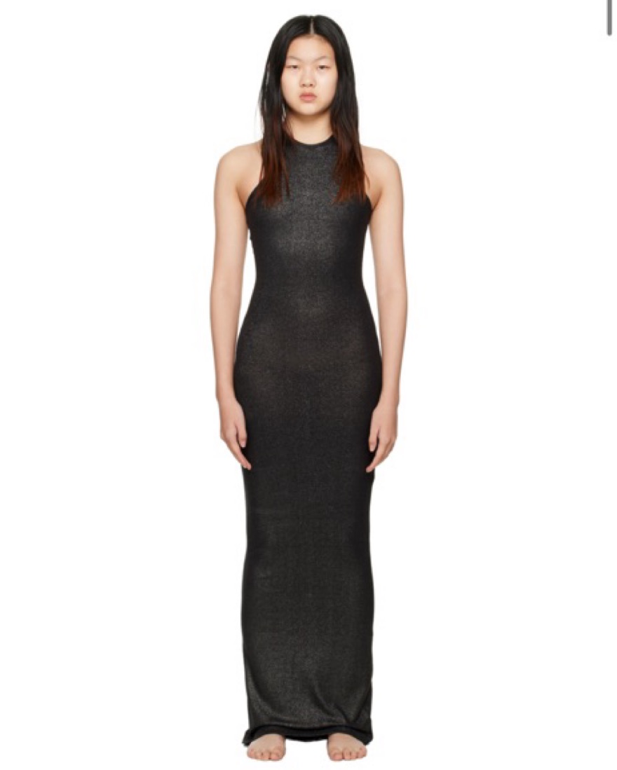 Size xxs. Color is grey with some shimmer. Rib knit stretch modal dress. Glittered effect throughout. Super stretchy can fit upto a medium