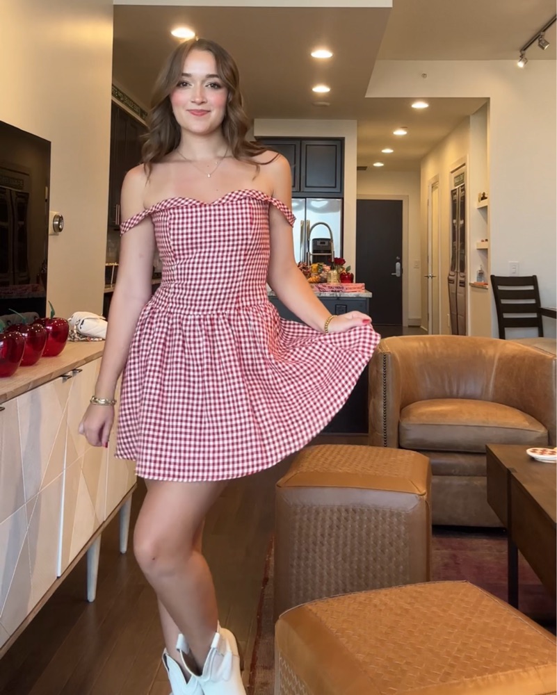 Taylor swift wore it. Enough said. (Kidding I’ll say more). Red plaid gingham mini dress with off the shoulder cap sleeves. Very darling. Great for a theme party, tennis match, date, picnic, all the above?