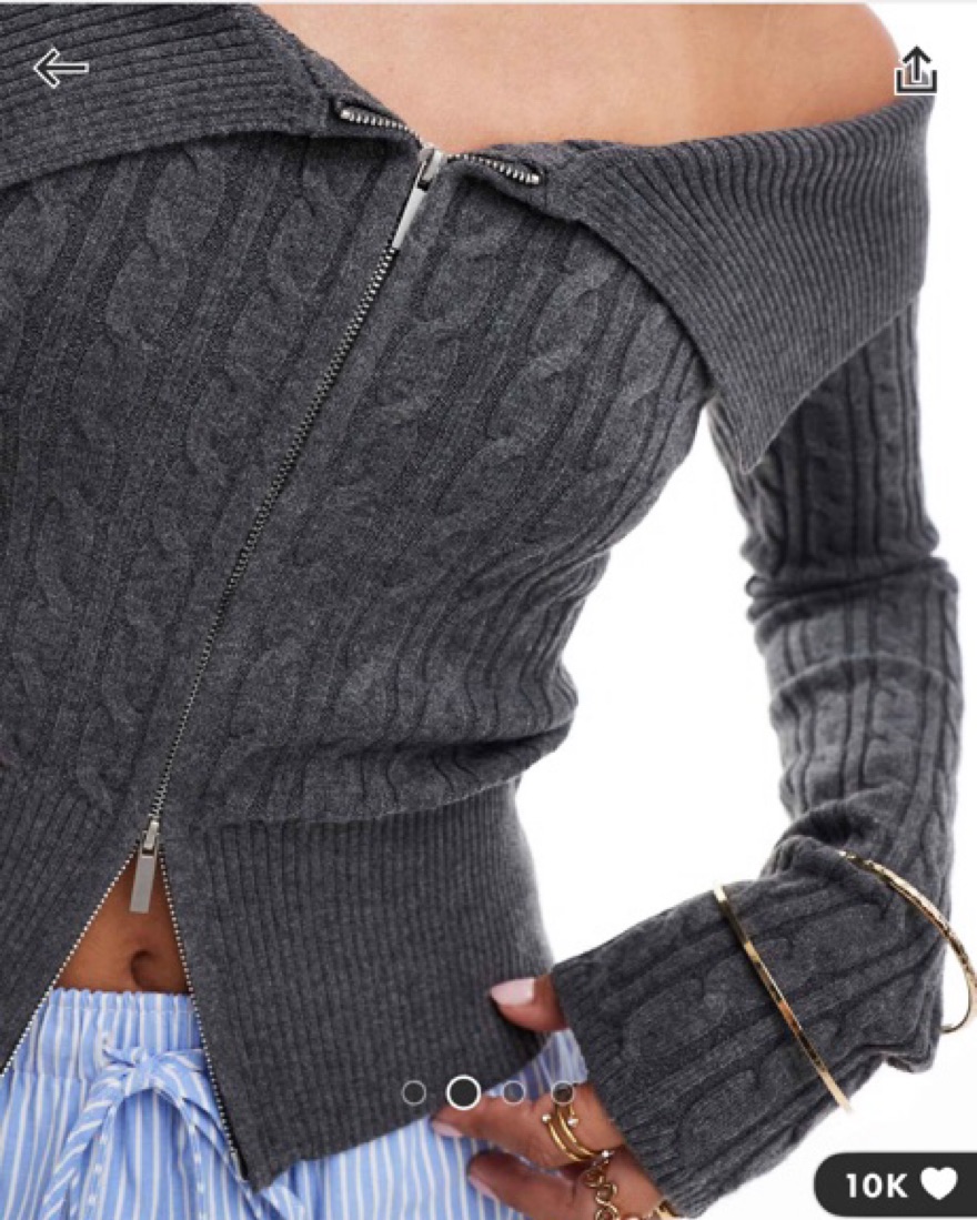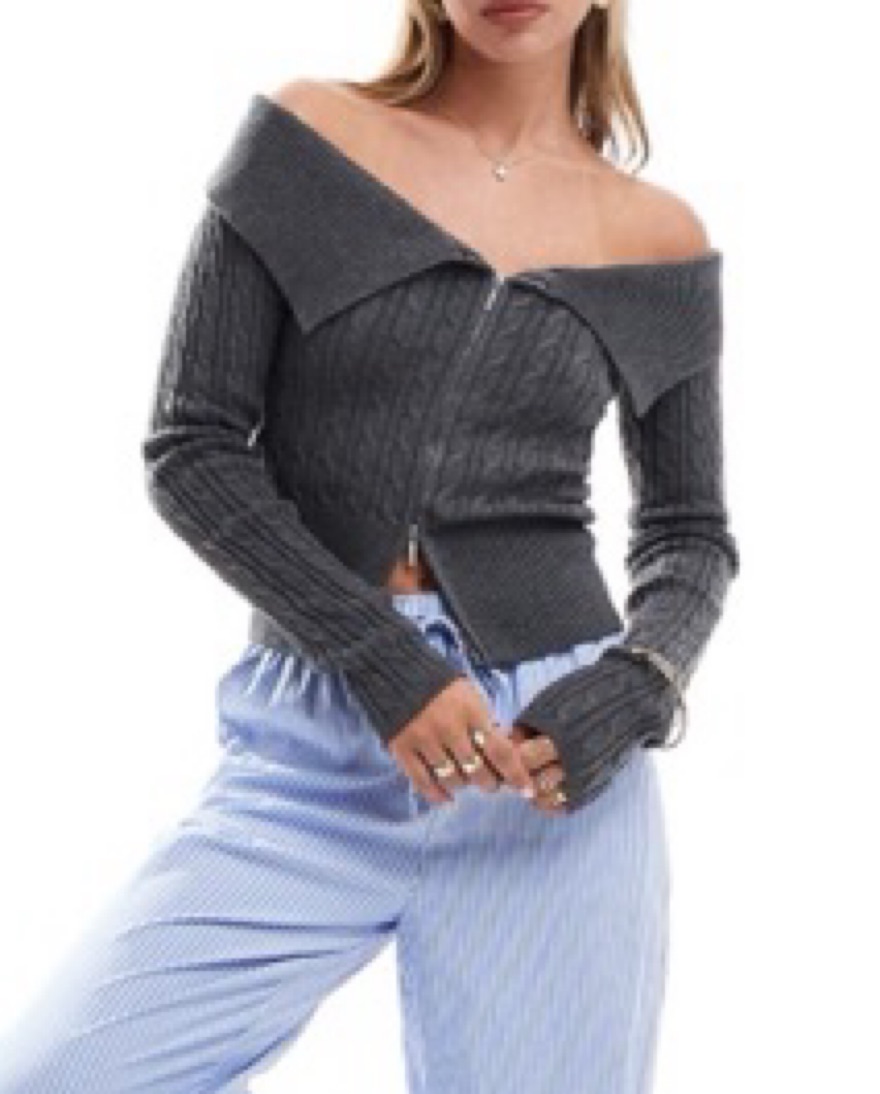 Off The Shoulder Grey Sweater Zip Top by ASOS - Pickle