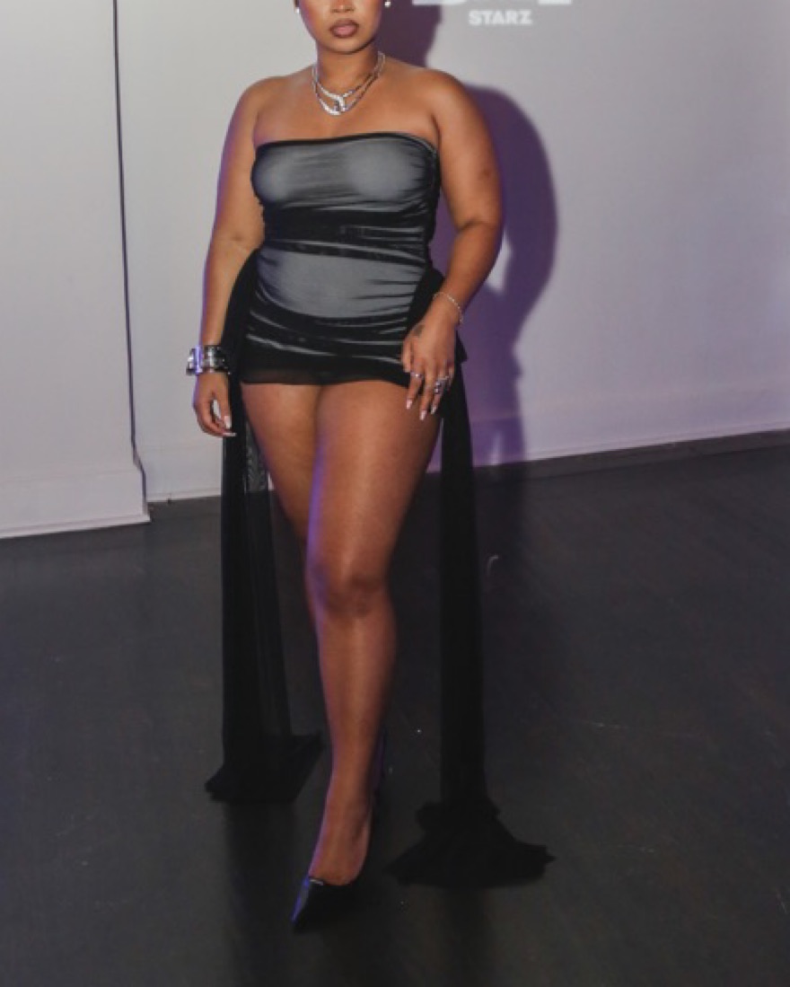 This stunning strapless minidress exudes effortless glamour and is perfect for a night out on the town or a special event.