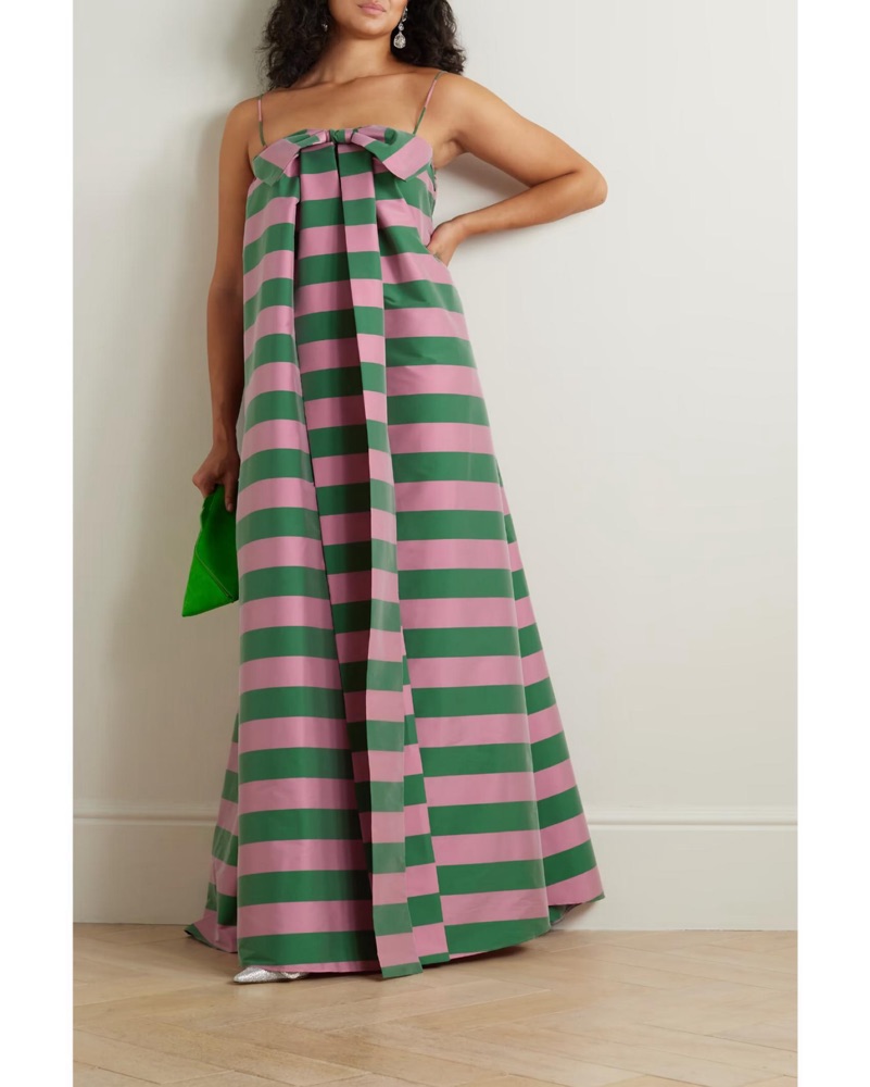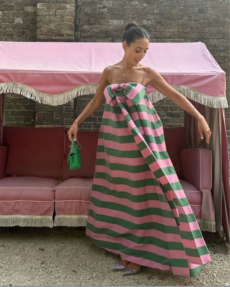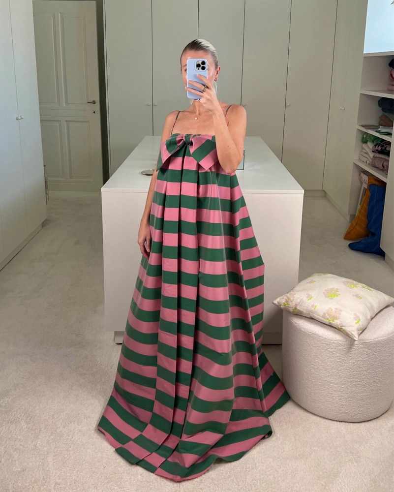Size EU 36 / US 4. True to size, designed for a loose fit. Viral pink and green striped maxi dress with an oversized A-line silhouette. Length 54.7”. Best suited for heights 5'6” and up. Tags: pink wedding guest dress, green wedding guest dress, green formal dress, gala, maid of honor, palm beach, t