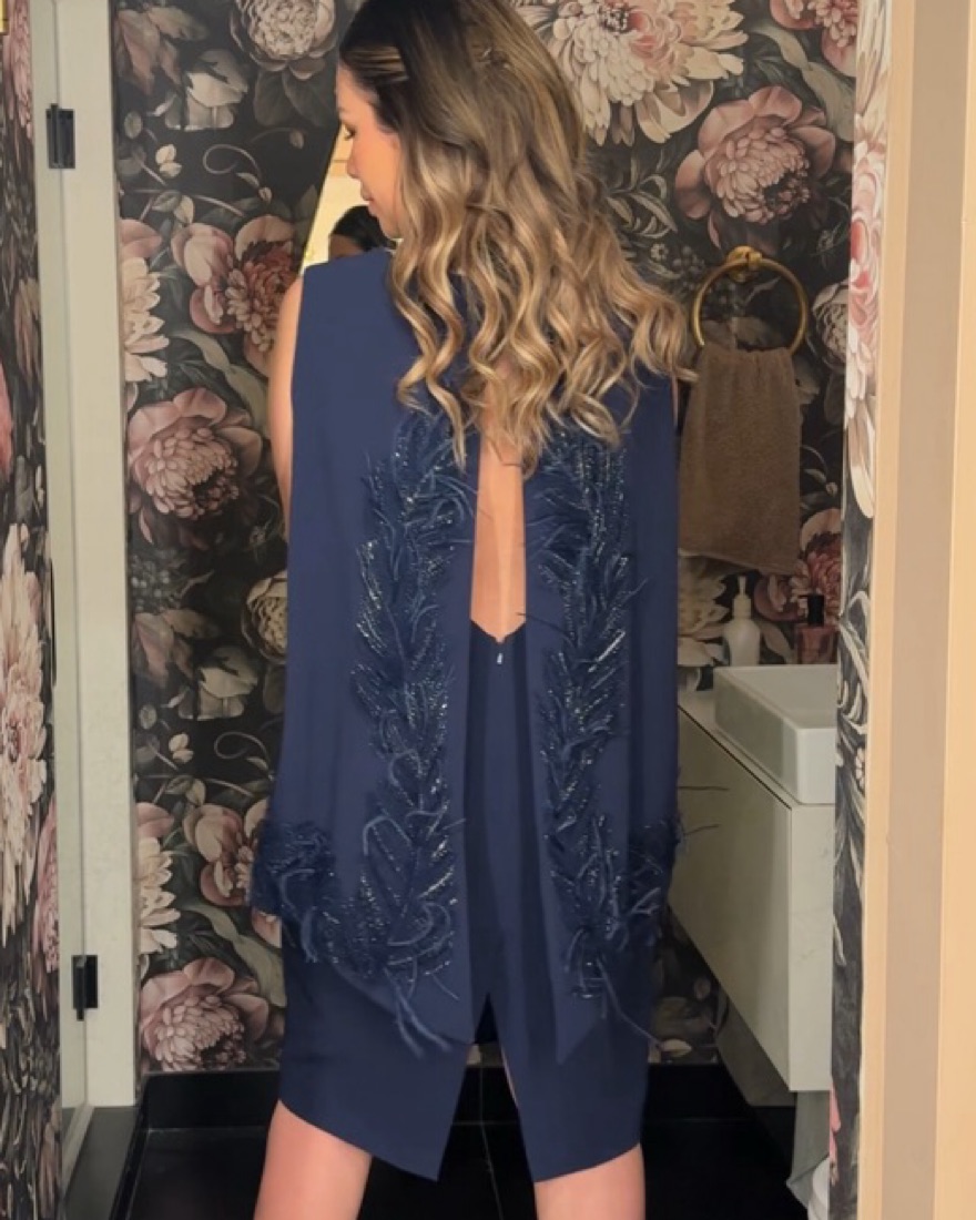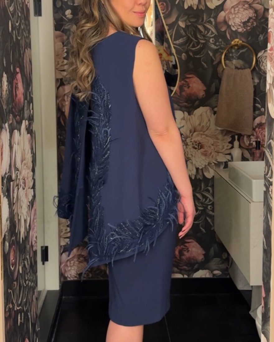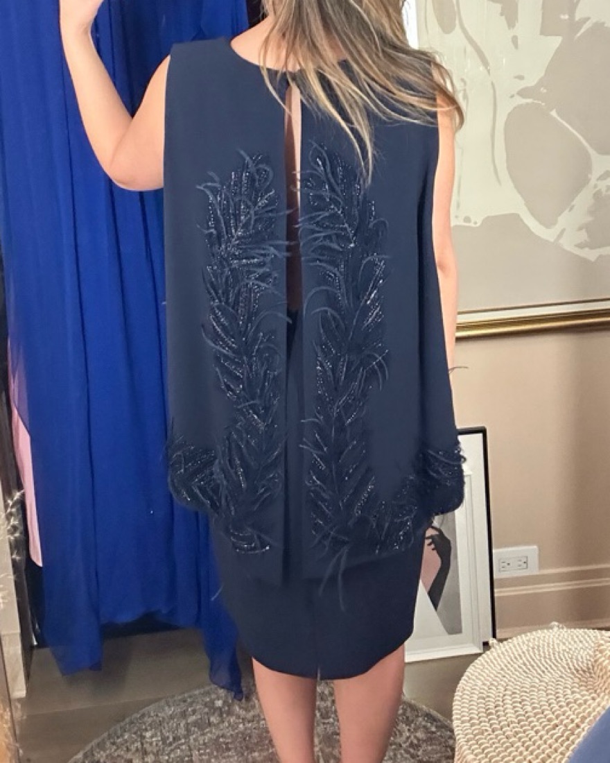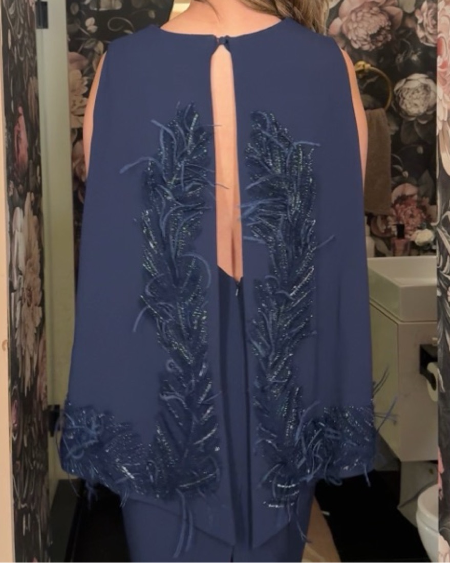 Sophisticated open back dress that is chic with beautiful beading. Very comfy. Open back detail is to die for