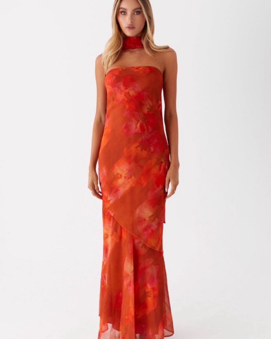 Orange Maxi Dress with Scarf by Peppermayo - Pickle