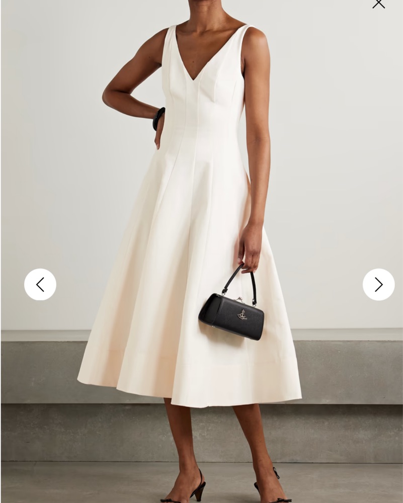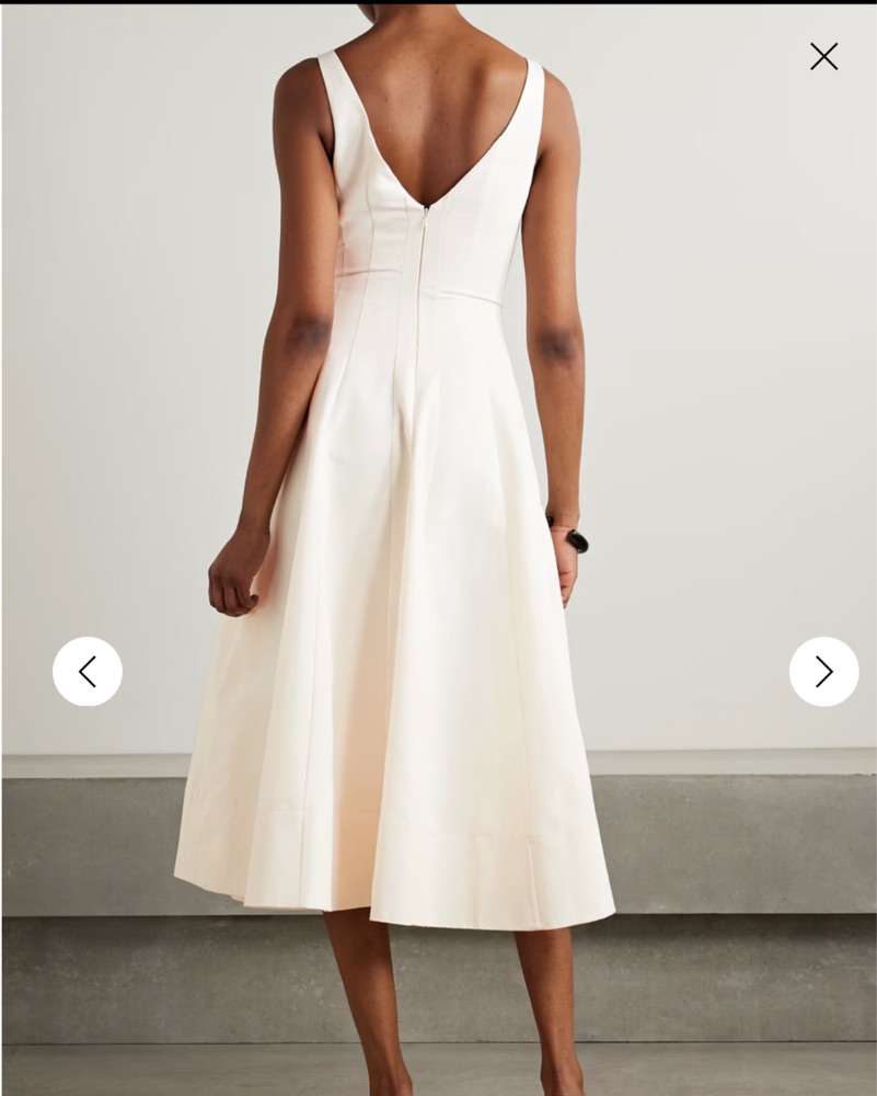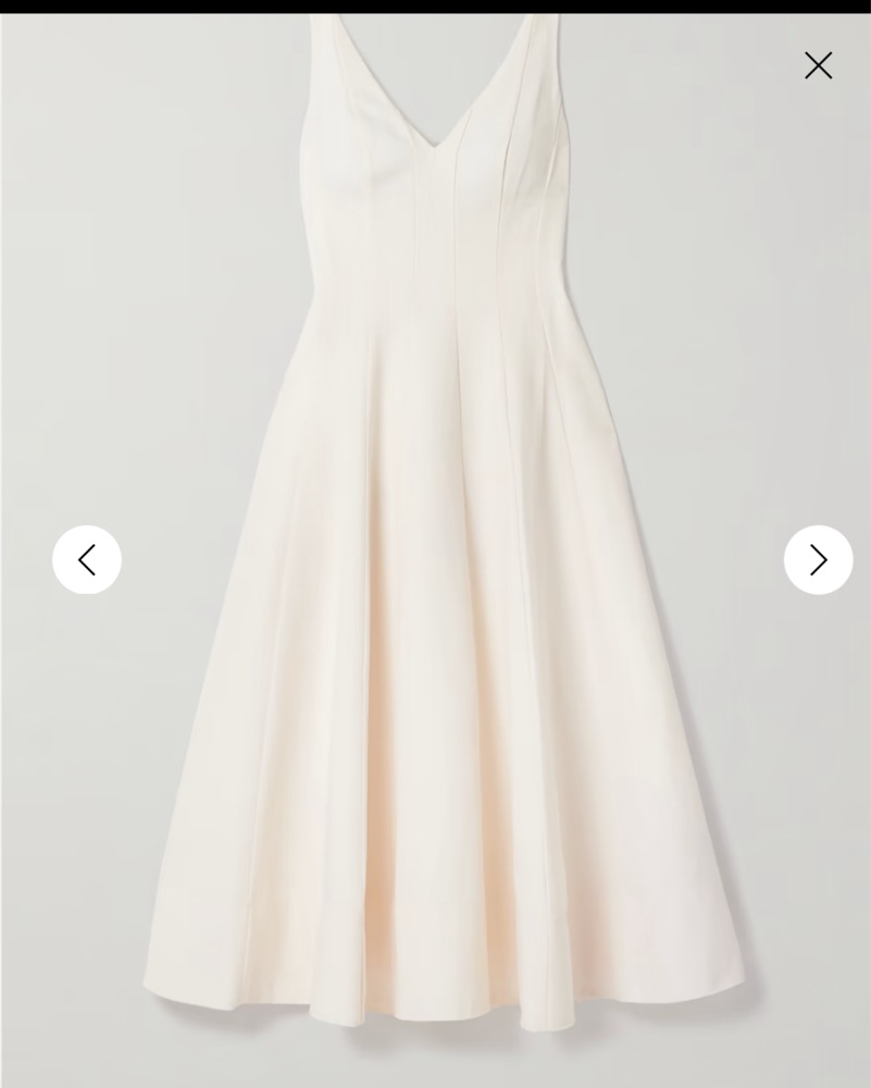 Ivory cotton blend midi dress. Perfect for a rehearsal dinner, engagement party, or bridal shower!