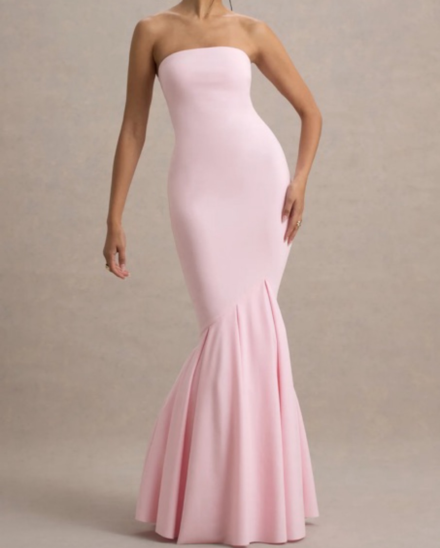 Pink bandeau body-con fishtail maxi dress -only worn once!