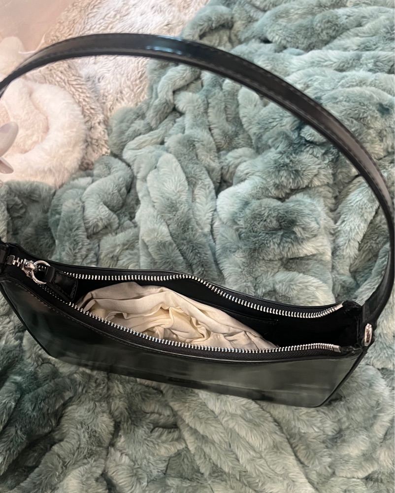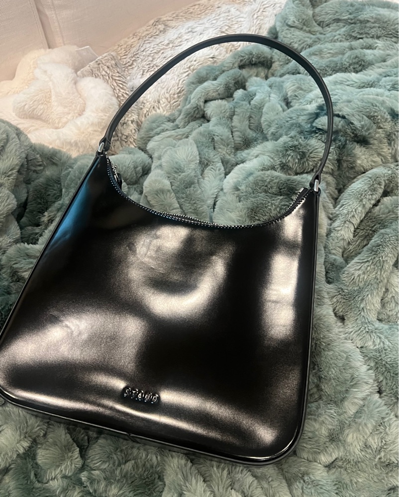 *never used* A classic structured shoulder bag, the Alec Bag features minimal silver hardware details and suede lining. This style is made out of a polished leather!