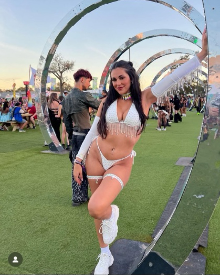 My most complimented rave fit!! top is B-C cup, bottoms are small but adjustable, everything else one size. Perfect for breakaway or edc! includes necklace, sleeves, bra, bra diamond cups, bottoms, and leg ties🤍