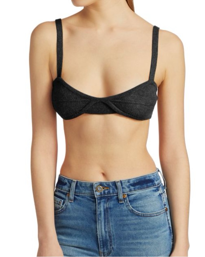Khaite Eda cashmere bralette bra in a very dark grey color